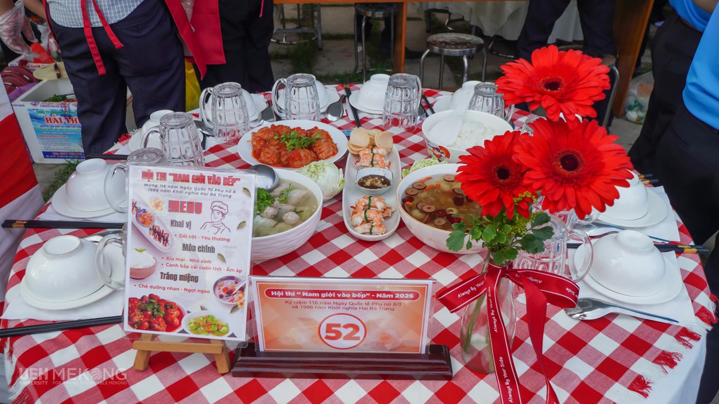 Hòa trong không khí thi đua sôi nổi chào mừng 116 năm Ngày Quốc tế Phụ nữ (08/3/1910 - 08/3/2026) và 1986 năm Khởi nghĩa Hai Bà Trưng, ngày 4/3/2026 tại Khu Du lịch Trường An Tỉnh Vĩnh Long, Đội thi của Công đoàn cơ sở UEH Mekong đã tích cực tham gia Hội thi “Nam giới vào bếp” năm 2026 do Liên đoàn Lao động tỉnh Vĩnh Long tổ chức. Hội thi không chỉ là hoạt động thiết thực hướng đến ngày 8/3 mà còn tạo nên không khí vui tươi, gắn kết trong tập thể đoàn viên, người lao động.