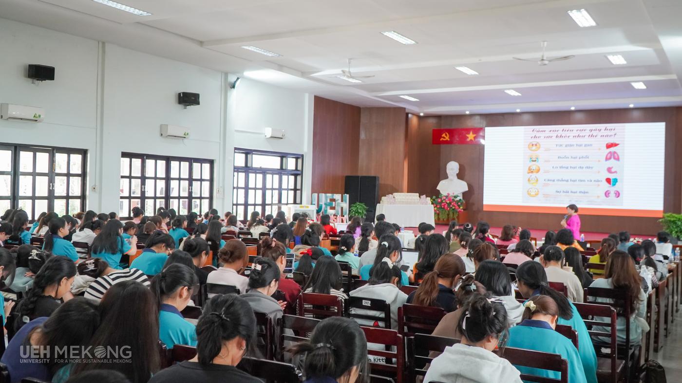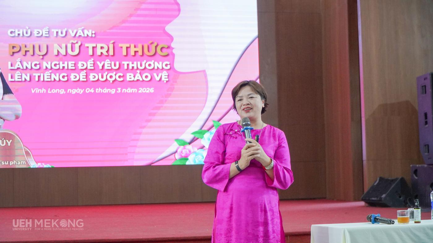 Bên cạnh các hoạt động ý nghĩa chào mừng 116 năm Ngày Quốc tế Phụ nữ, ngày 4/3/2026, đoàn viên, VC-NLĐ và sinh viên UEH Mekong đã được tham gia Chương trình Talkshow tư vấn tâm lý, sức khỏe tinh thần với chủ đề “Phụ nữ trí thức: Lắng nghe để yêu thương, lên tiếng để được bảo vệ”.