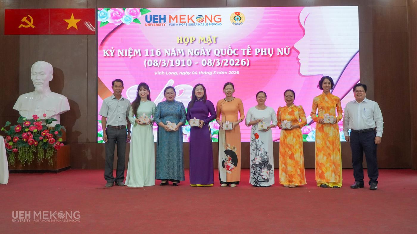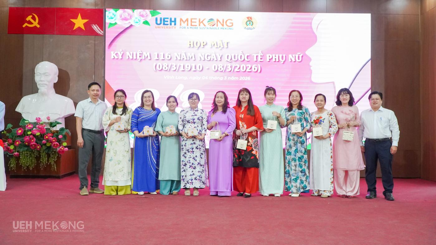 Chuỗi hoạt động kỷ niệm Ngày Quốc tế Phụ nữ 8/3 năm 2026 tại UEH Mekong đã diễn ra thiết thực, ý nghĩa và ấm áp nghĩa tình. Các hoạt động không chỉ mang lại những phút giây vui tươi, gắn kết mà còn góp phần nâng cao nhận thức, khơi dậy niềm tự hào truyền thống, tạo động lực để nữ VC-NLĐ tiếp tục phát huy năng lực, bản lĩnh và trí tuệ, đóng góp tích cực vào sự phát triển bền vững của UEH Mekong trong giai đoạn mới.