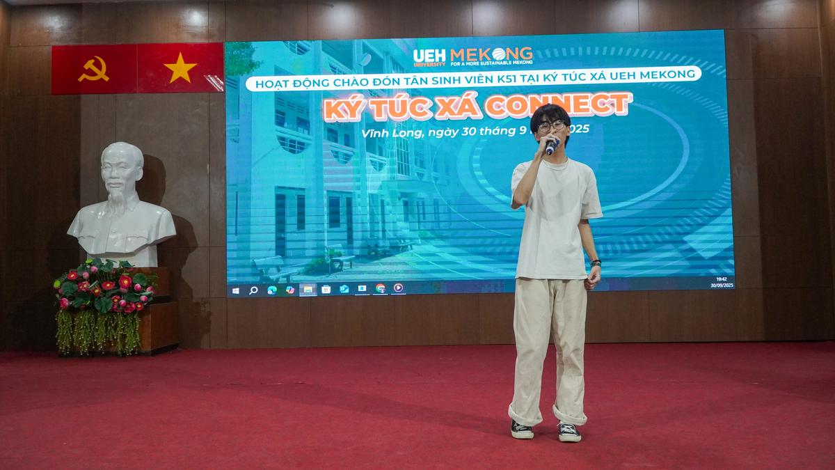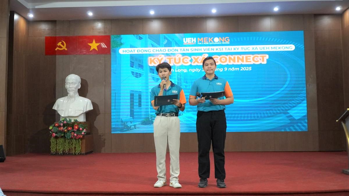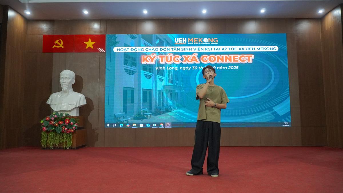 Tối ngày 30/9/2025, tại Hội trường A, Ban Quản lý Ký túc xá UEH Mekong tổ chức Chương trình chào đón Tân sinh viên nội trú K51 Đại học chính quy với chủ đề “Ký túc xá Connect”. Chương trình được tổ chức nhằm chào đón những sinh viên mới K51 Đại học chính quy tham gia vào khu nội trú UEH Mekong, qua đó duy trì và xây dựng một cộng đồng nội trú đoàn kết, văn minh, xóa tan đi mọi khoảng cách lạ lẫm ban đầu của các bạn tân sinh viên.
