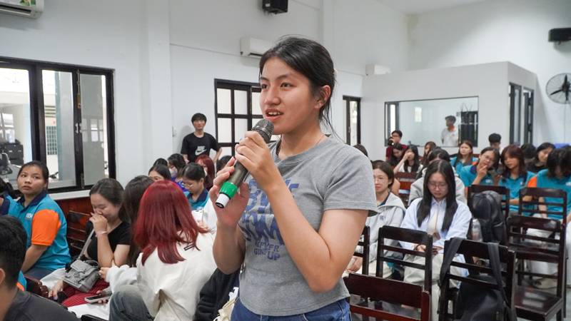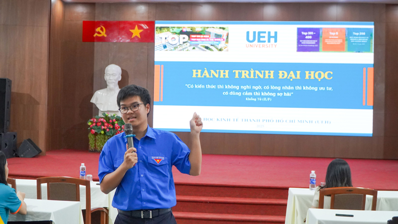 Bạn Võ Tâm Dũng - Ủy viên BCH Đoàn thanh niên UEH, Phó Bí thư Đoàn Khoa Luật, sinh viên Khóa 48 ngành Luật Kinh tế chia sẻ tại Chương trình