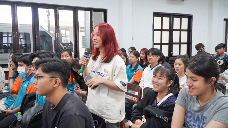 Diễn giả khách mời giao lưu, trao đổi kinh nghiệm và giải đáp thắc mắc cho các bạn tân sinh viên K51 ĐHCQ