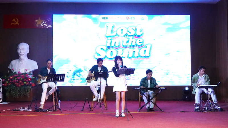 Đêm nhạc Lost in the Sound mang đến một không gian acoustic ấm áp, nơi âm thanh và cảm xúc hòa quyện để tạo nên những khoảnh khắc lắng đọng. Chương trình được đầu tư chỉn chu về âm thanh và ánh sáng, mang đến cho khán giả một đêm thưởng thức âm nhạc nhẹ nhàng nhưng đầy rung động, từ những giai điệu sâu lắng đến những tiết mục tươi sáng, giúp tạm quên đi nhịp sống vội vã để hòa mình cảm xúc của âm nhạc. Góp phần làm nên sức hút của đêm nhạc là những giọng ca đầy nội lực đến từ sinh viên UEH Mekong và các trường THPT. Mỗi tiết mục mang một nét riêng, truyền tải cảm xúc chân thật và để lại những ấn tượng khó phai trong lòng khán giả.
