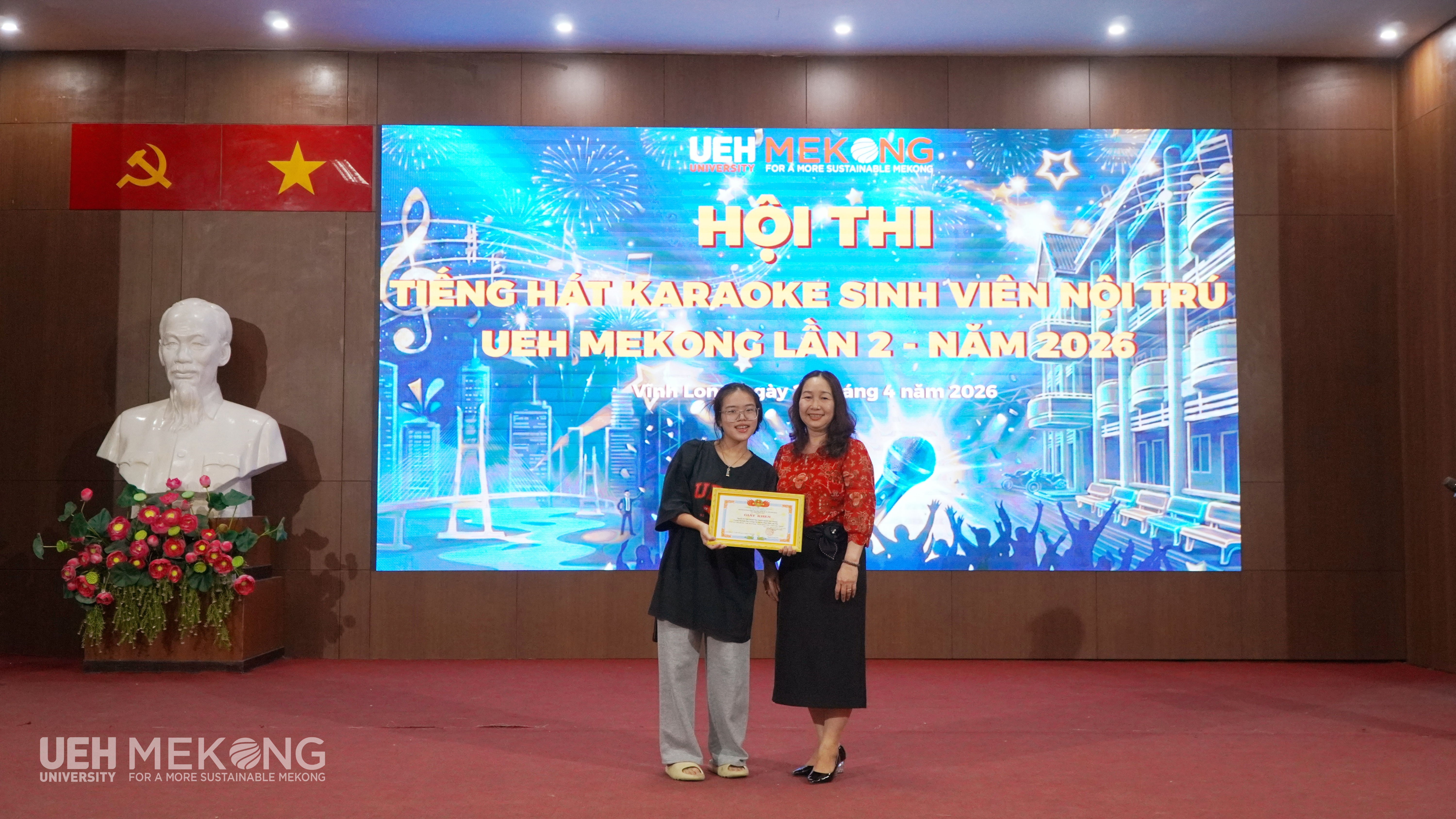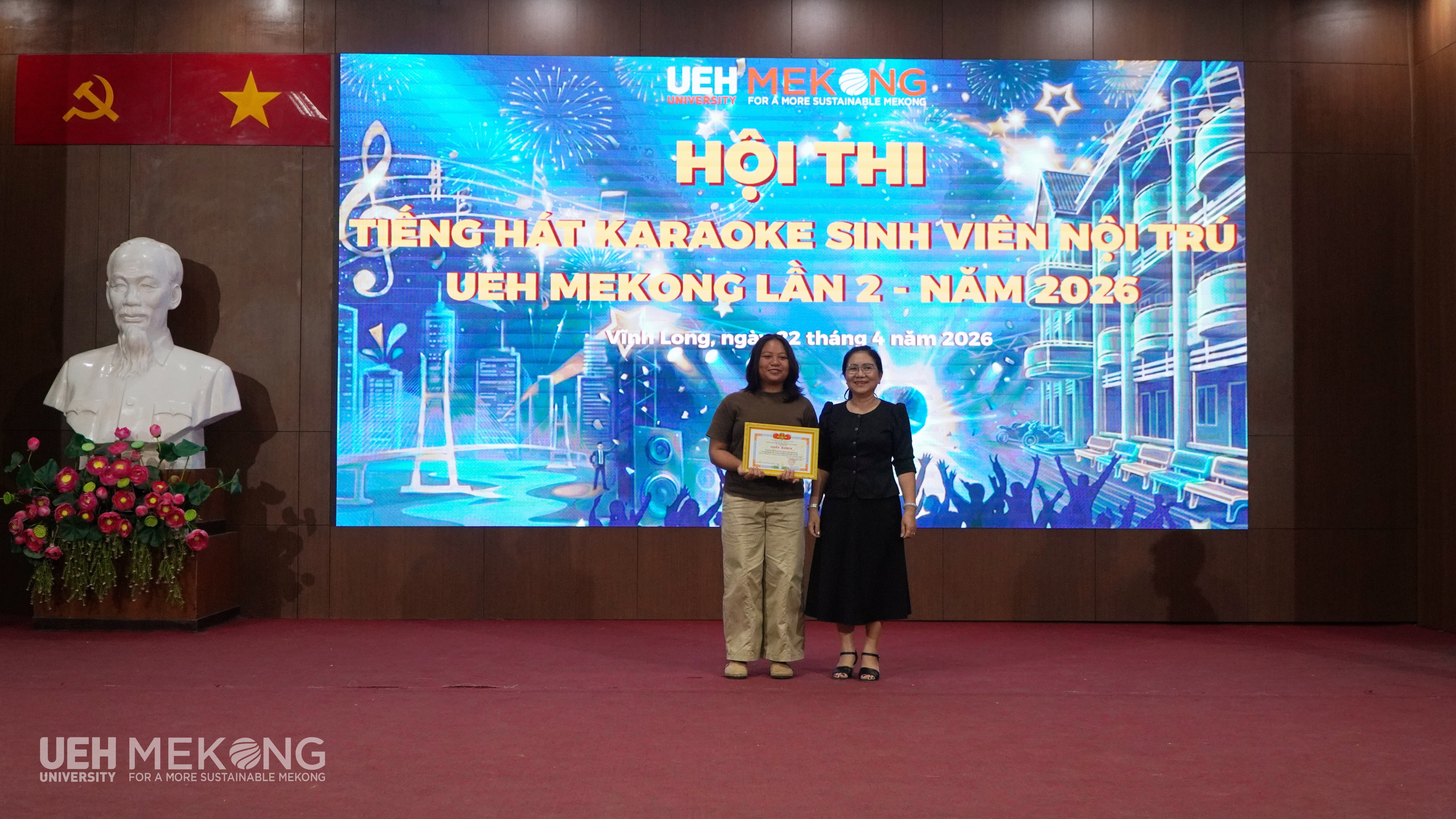 Hội thi Tiếng hát karaoke sinh viên nội trú lần 2 năm 2026 đã khép lại, nhưng dư âm của những giai điệu từ những bài hát và những tràng pháo tay cổ vũ nồng nhiệt của khán giả vẫn còn đọng lại. Thành công của chương trình không chỉ nằm ở những giải thưởng được trao, mà chính là những nụ cười rạng rỡ và sự gắn kết giữa các bạn sinh viên nội trú. Đây chắc chắn sẽ là kỷ niệm đẹp, đáng nhớ để các bạn sinh viên lưu giữ trong hành trình tuổi trẻ và quãng đời sinh viên của mình. Hi vọng những hoạt động như thế này sẽ tiếp tục là đòn bẩy tinh thần giúp các bạn thêm yêu mến mái nhà chung - Ký túc xá UEH Mekong.