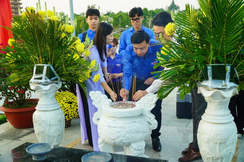 Đảng ủy bộ phận, Ban Giám đốc, BCH Công đoàn, BCH Đoàn - Hội, BCH Chi đoàn cơ quan và đoàn viên thanh niên UEH Mekong viếng và thắp hương tại Nghĩa trang liệt sĩ tỉnh Vĩnh Long