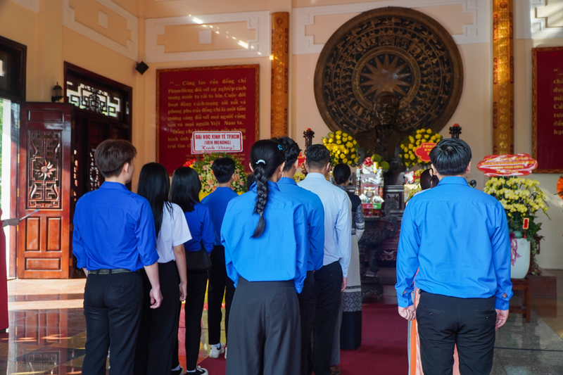 Đảng ủy bộ phận, Ban Giám đốc, BCH Công đoàn, BCH Đoàn - Hội, BCH Chi đoàn cơ quan và đoàn viên thanh niên UEH Mekong viếng và thắp hương tại Đền thờ Chủ tịch Hội đồng Bộ trưởng Phạm Hùng