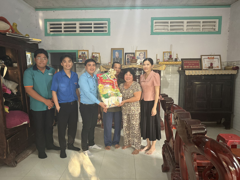 Từ nguồn kinh phí vận động, Đoàn – Hội UEH Mekong đã triển khai nhiều hoạt động chăm lo thiết thực, hướng đến các đối tượng chính sách và những hoàn cảnh còn nhiều khó khăn trên địa bàn tỉnh. Theo đó, Đoàn – Hội đã tổ chức thăm hỏi và tặng quà gia đình Mẹ Việt Nam Anh hùng Nguyễn Thị Tám, thể hiện lòng tri ân sâu sắc đối với những hy sinh to lớn của các thế hệ đi trước; đồng thời trao quà Tết cho 12 hộ gia đình chính sách trên địa bàn tỉnh Vĩnh Long.