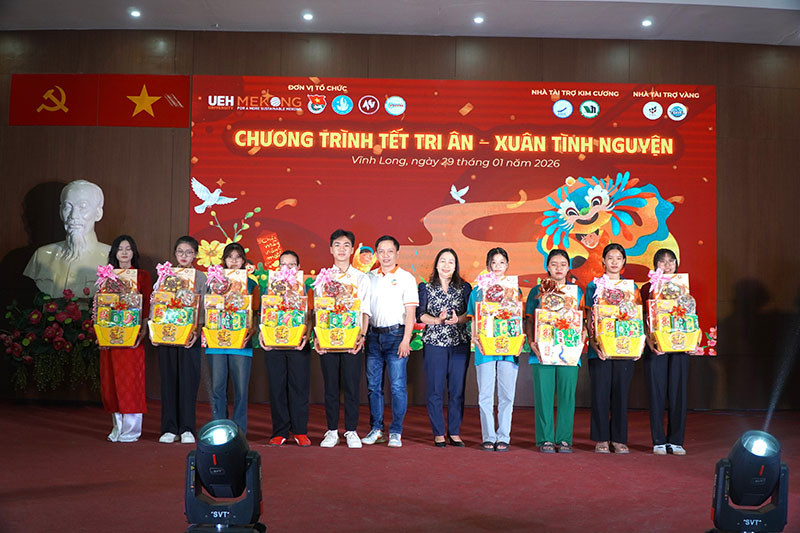 Nhằm phát huy vai trò của tổ chức Đoàn và tinh thần xung kích của tuổi trẻ trong phong trào “Uống nước nhớ nguồn”, “Đền ơn đáp nghĩa” chăm lo cho các gia đình chính sách, người có công với cách mạng; giúp đỡ và động viên đoàn viên, thanh niên công nhân, hộ gia đình, trẻ em có hoàn cảnh khó khăn được vui xuân, đón Tết cổ truyền của dân tộc; Đoàn Thanh niên - Hội Sinh viên Phân hiệu Đại học Kinh tế Thành phố Hồ Chí Minh tại tỉnh Vĩnh Long (UEH Mekong) và các Câu lạc bộ (CLB) trực thuộc Đoàn UEH Mekong tổ chức Chương trình “Tết tri ân - Xuân tình nguyện” với nguồn kinh phí thực hiện hoạt động được Đoàn - Hội vận động thông qua phong trào “Nuôi heo đất” của các chi đoàn và nguồn vận động xã hội hóa từ các Câu lạc bộ trực thuộc Đoàn UEH Mekong