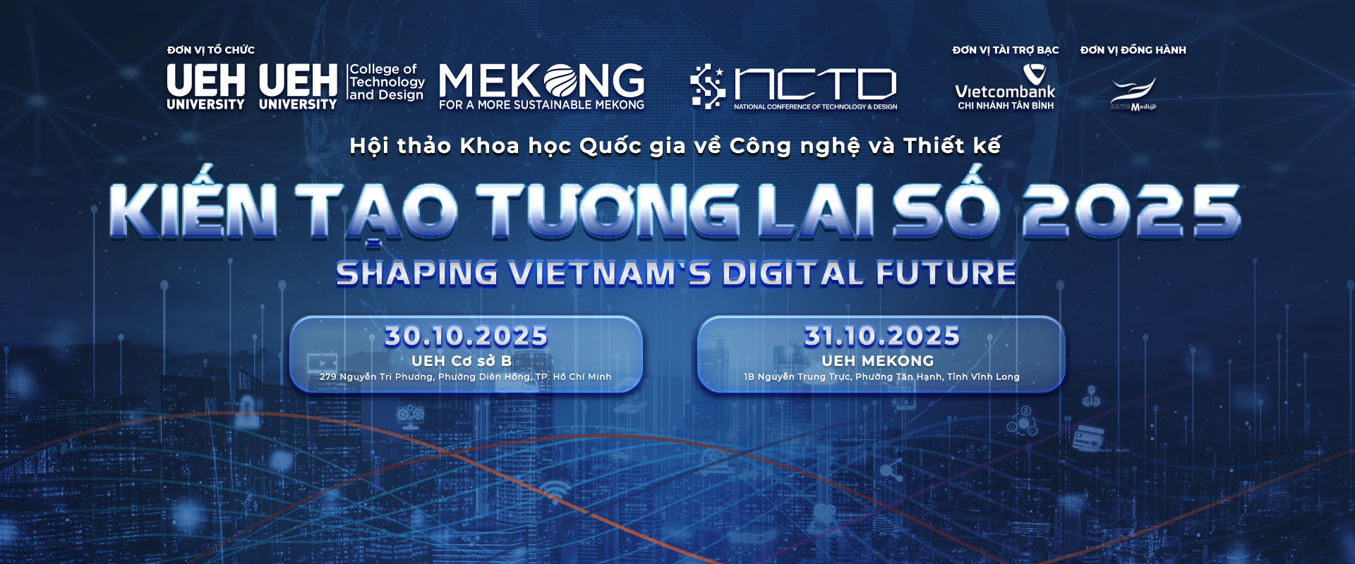 Hội thảo Khoa học Quốc gia về Công nghệ và Thiết kế là một sự kiện quan trọng được tổ chức định kỳ 02 năm một lần do Trường Công nghệ và Thiết kế UEH (CTD) đăng cai tổ chức. Với chủ đề “Kiến tạo tương lai số” (Shaping Vietnam’s Digital Future) năm 2025, UEH tiếp tục phối hợp với các trường đại học uy tín, danh tiếng trong và ngoài nước tổ chức Hội thảo Khoa học Quốc gia về Công nghệ và Thiết kế nhằm mục tiêu tìm kiếm các giải pháp, công nghệ và chính sách phù hợp để thực hiện Chiến lược quốc gia về nghiên cứu, phát triển và ứng dụng Công nghệ số đến năm 2030 theo Quyết định 127/QĐ-TTg của Thủ tướng Chính phủ ngày 26 tháng 01 năm 2021 về việc ban hành Chiến lược quốc gia về nghiên cứu, phát triển và ứng dụng Trí tuệ nhân tạo đến năm 2030.