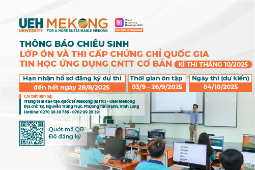 UEH Mekong thông báo tổ chức lớp ôn và thi cấp chứng chỉ tin học ứng dụng Công nghệ thông tin cơ bản - Kỳ thi tháng 10 năm 2025