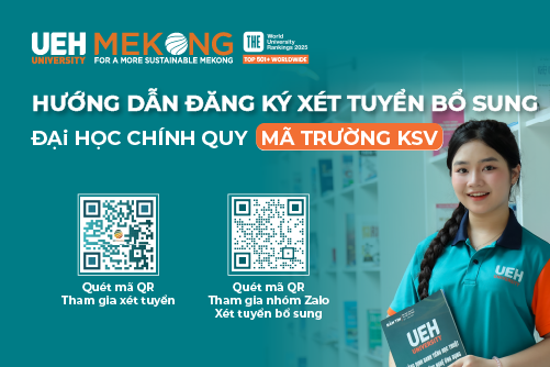Phân hiệu Đại học Kinh tế Thành phố Hồ Chí Minh tại tỉnh Vĩnh Long (UEH Mekong) thông báo hướng dẫn thí sinh đăng ký xét tuyển bổ sung Khóa 51 hệ Đại học chính quy năm 2025 (Mã trường: KSV).