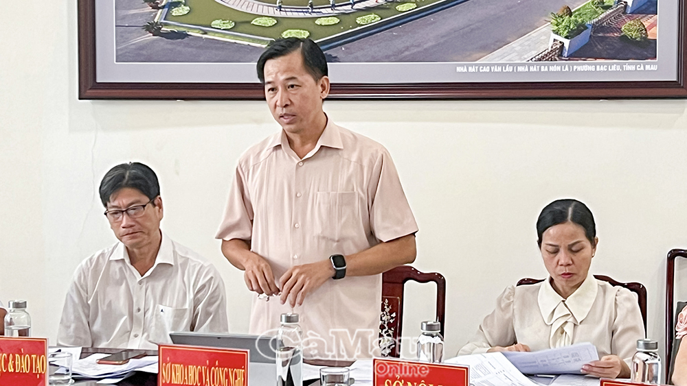 Tiến sĩ Quách Văn Ấn, Phó Giám đốc Sở Khoa học và Công nghệ tỉnh Cà Mau phát biểu, đề xuất một số nội dung phối hợp thời gian tới. Ảnh: Trúc Linh.