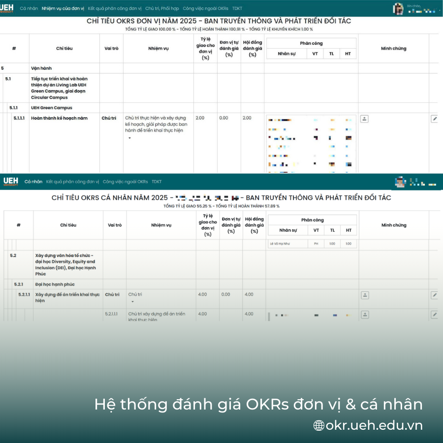(5) Thiết lập mục tiêu cho từng tiêu chí, gắn với hệ thống OKRs theo 5 trụ cột chiến lược gồm Đào tạo, Nghiên cứu, Quản trị, Vận hành và Cộng đồng;