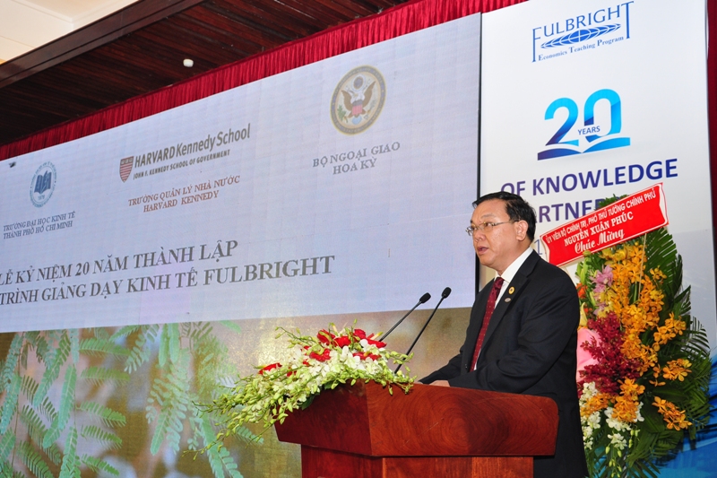 GS.TS. Nguyễn Đông Phong - Chủ tịch Hội đồng UEH phát biểu tại lễ kỷ niệm 20 năm thành lập Chương trình Giảng dạy Kinh tế Fulbright ngày 17/01/2015