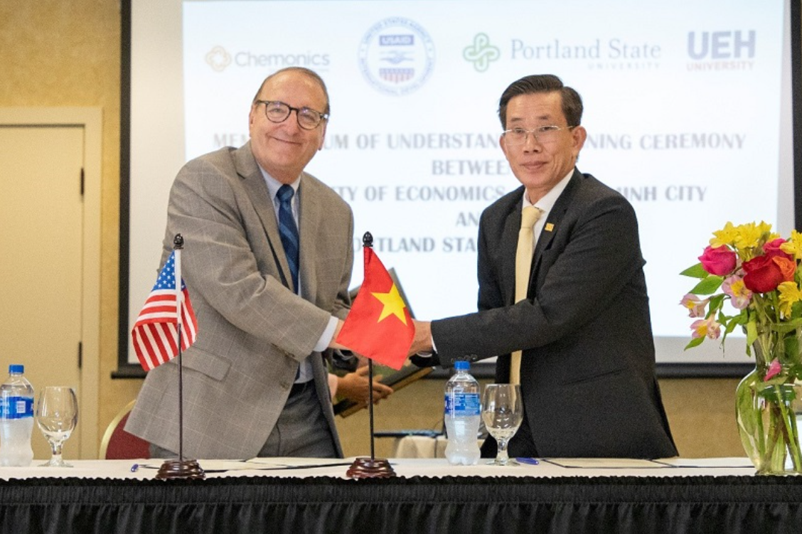 Trong khuôn khổ các dự án do Cơ quan Phát triển Quốc tế Hoa Kỳ (USAID) tài trợ, UEH hợp tác với Đại học Portland State triển khai các chương trình công nhận tín chỉ, trao đổi học thuật và phát triển chương trình đào tạo liên kết phục vụ cộng đồng và phát triển bền vững.