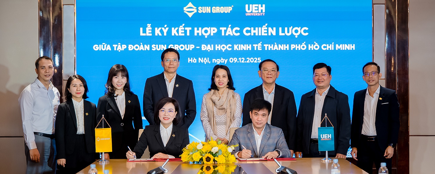 [Báo An ninh Thủ đô] - Ngày 9/12, Tập đoàn Sun Group và Đại học kinh tế TP.HCM (UEH) ký kết hợp tác giai đoạn 2025–2030, mở ra chuỗi chương trình đào tạo – nghiên cứu – thực tập – tuyển dụng nhằm xây dựng thế hệ nhân lực chất lượng cao cho ngành dịch vụ, du lịch và kinh tế sáng tạo của Việt Nam.