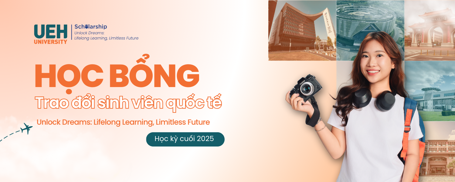 Nằm trong chiến lược học bổng toàn diện với thông điệp “Unlock Dreams: Lifelong Learning, Limitless Future - Khai phóng ước mơ: Học tập suốt đời, Chủ động tương lai”, tiếp nối thành công của học kỳ đầu 2025, Đại học Kinh tế Thành phố Hồ Chí Minh (UEH) chính thức mở đợt xét tuyển học bổng Trao đổi sinh viên quốc tế UEH dành cho học kỳ cuối năm 2025 từ ngày 01/12/2025 đến 14/12/2025. Với sự hỗ trợ tài chính từ UEH và các trường đối tác, học bổng mang lại cơ hội trải nghiệm học tập quốc tế cho các bạn sinh viên có học lực giỏi, năng lực tiếng Anh tốt, đặc biệt là các bạn đạt học bổng Khuyến khích học tập trong học kỳ.