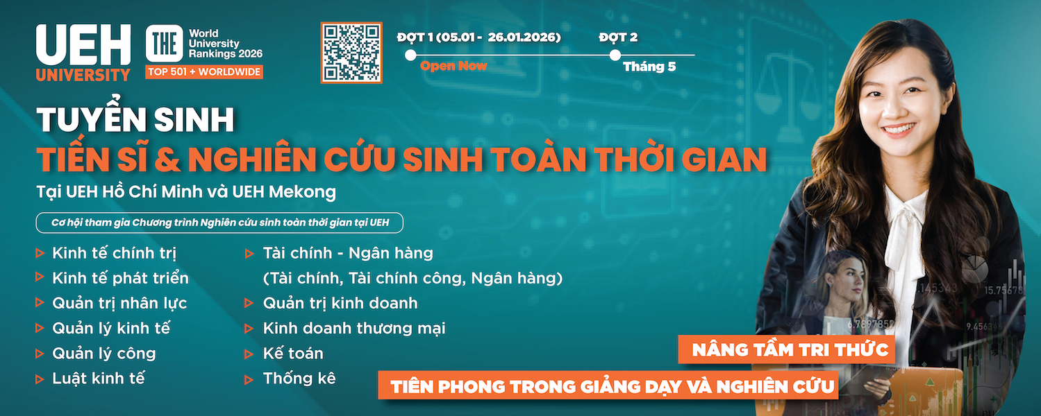 UEH thông báo tuyển sinh đào tạo trình độ tiến sĩ đợt 1 năm 2026 và chương trình nghiên cứu sinh toàn thời gian tại UEH TP. Hồ Chí Minh và UEH Mekong