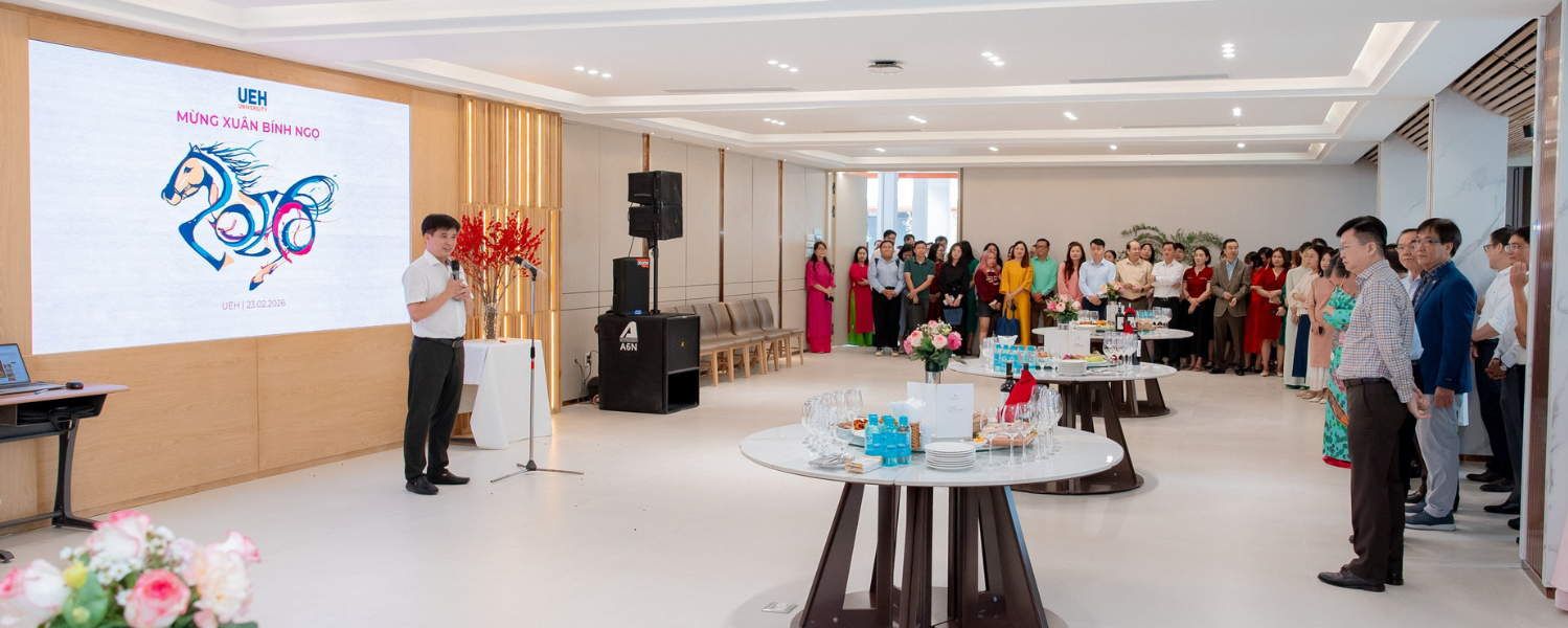 Ngày 23/02/2026, trong không khí hân hoan những ngày đầu xuân Bính Ngọ 2026, Đại học Kinh tế Thành phố Hồ Chí Minh (UEH) đã tổ chức buổi Họp mặt đầu Xuân với sự tham dự của toàn thể lãnh đạo, viên chức và người lao động UEH. Buổi họp mặt đánh dấu một năm mới “mã đáo thành công” với nhiều kỳ vọng và quyết tâm của UEHer.