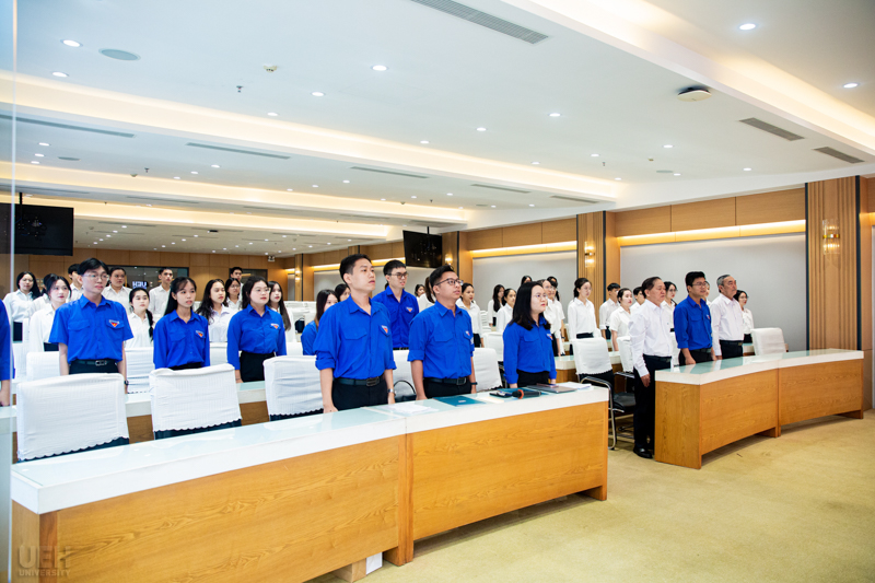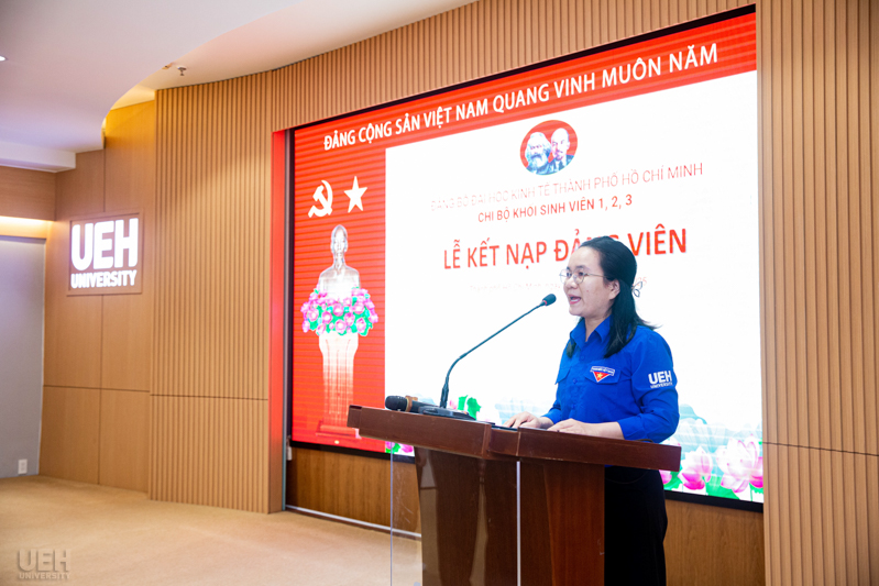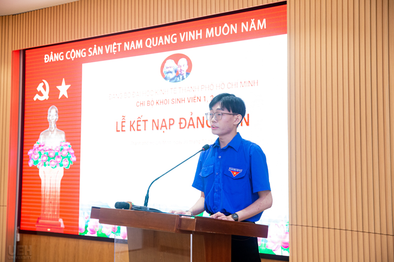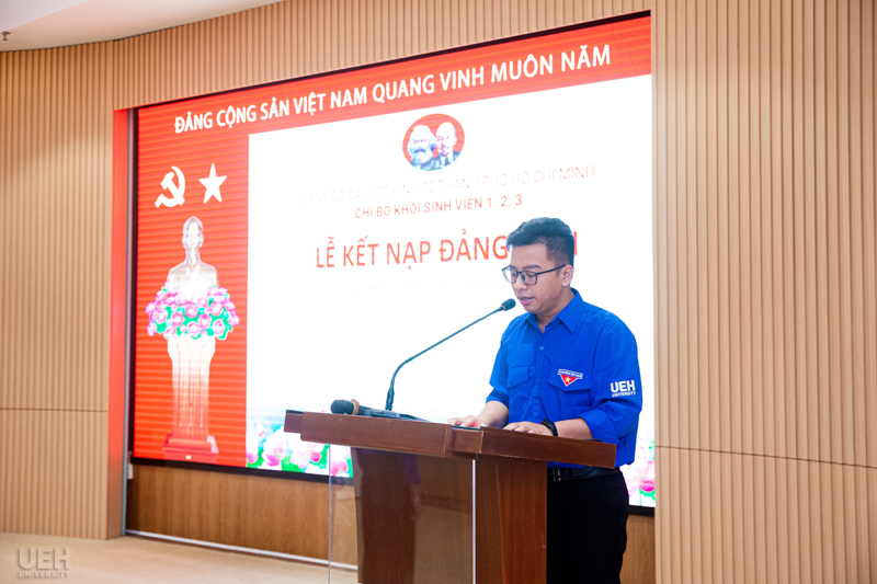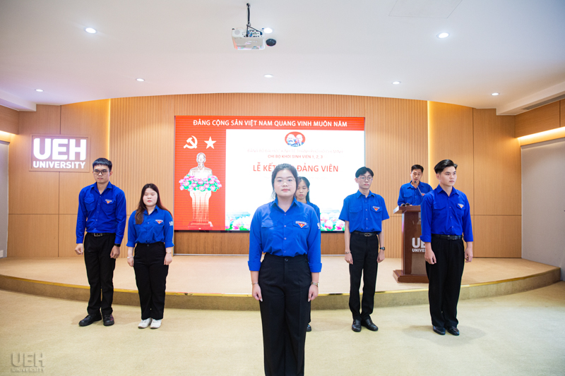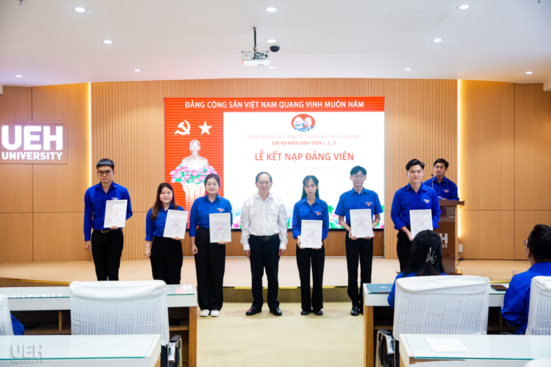 Chiều ngày 30/10/2025, tại Hội trường A.103 cơ sở A, các Chi bộ Khối Sinh viên 1,2,3 thuộc Đảng bộ Đại học Kinh tế Thành phố Hồ Chí Minh (UEH) đã long trọng tổ chức Lễ kết nạp Đảng viên cho 6 đoàn viên ưu tú nhân dịp Kỷ niệm 49 năm thành lập UEH (27/10/1976 - 27/10/2025).