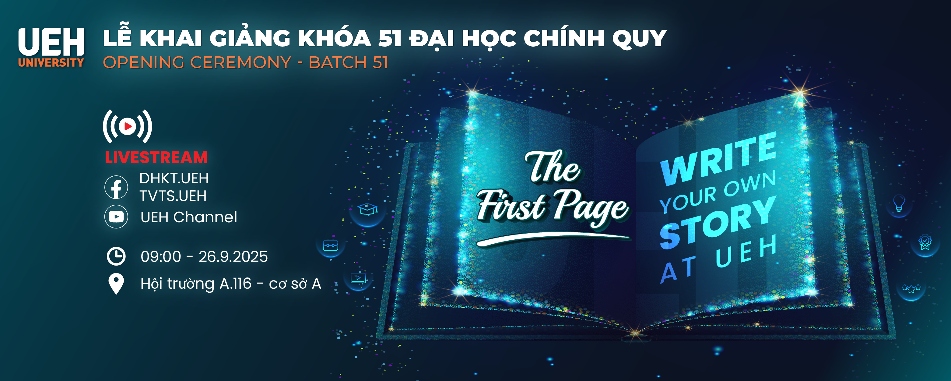 [LIVE] Lễ khai giảng Khóa 51 Đại học chính quy “The First Page - Write Your Own Story at UEH”