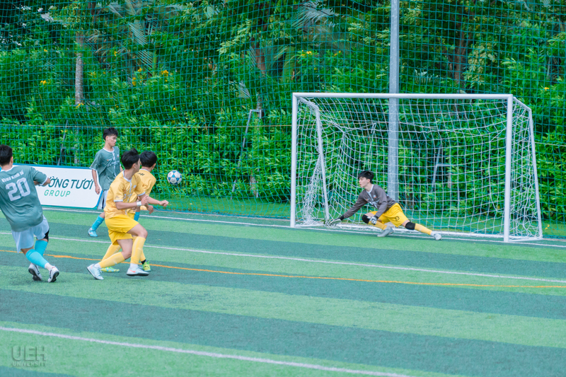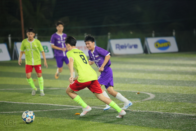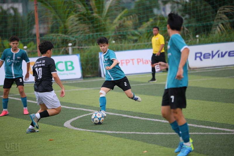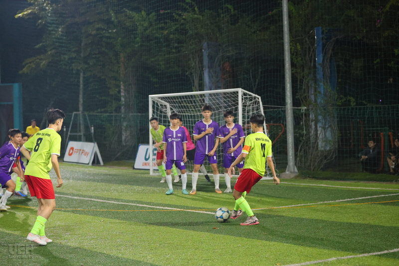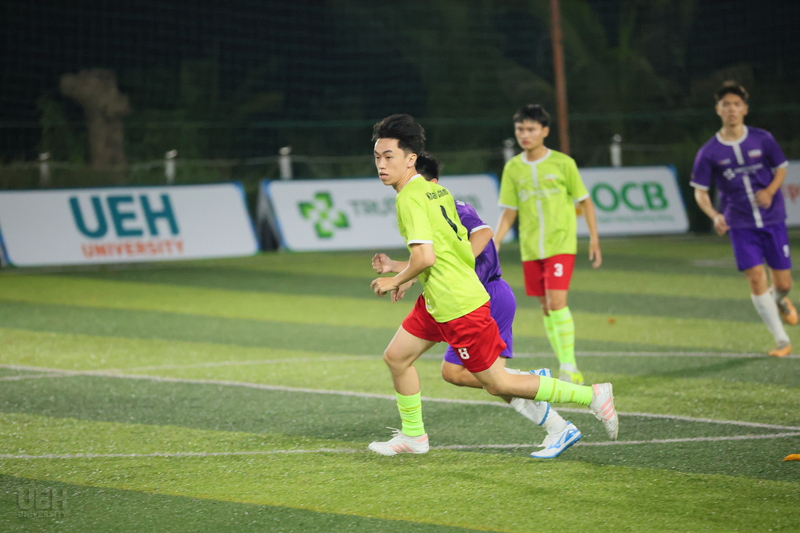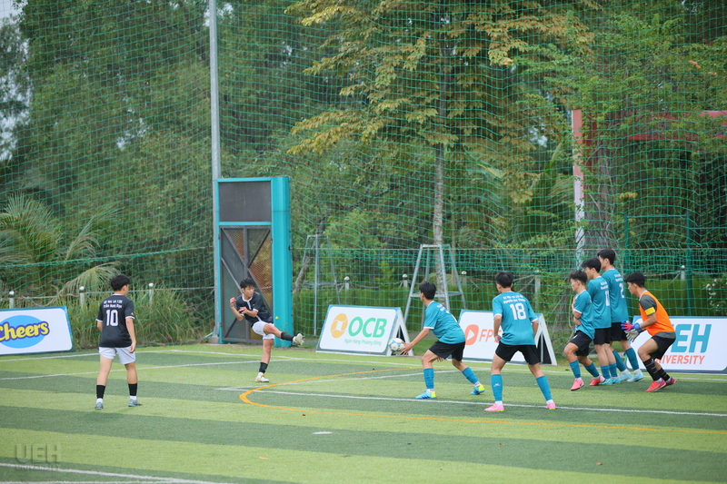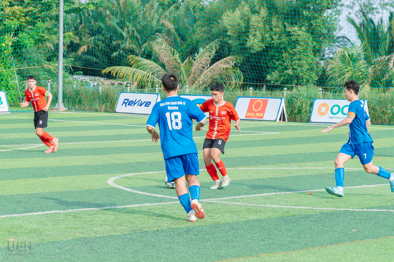 Trận đấu kết thúc vòng 5 diễn ra với kịch bản hấp dẫn, bắt đầu bằng bàn mở tỷ số của Đoàn Minh Tiến ở phút 5 cho UEH.ISB. Hiệp một chứng kiến sự kiểm soát của UEH.ISB nhờ hàng thủ vững chắc, nhưng hiệp hai trở nên kịch tính hơn với các bàn thắng từ Ngô Quốc Bảo (phút 43) và Nguyễn Trần Thế Anh. Khoa Kế toán đã vùng lên với hai bàn gỡ từ Nguyễn Xuân Hòa và Vi Thế Anh, nhưng UEH.ISB vẫn giữ vững lợi thế nhờ khả năng tận dụng cơ hội tốt hơn. Chiến thắng này không chỉ nâng cao vị trí của UEH.ISB mà còn thể hiện sự phát triển của các cầu thủ trẻ trong việc duy trì áp lực đến phút cuối.