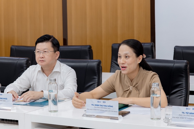 Phát biểu tại buổi làm việc, TS. Đinh Công Khải - Phó Giám đốc UEH chia sẻ: “Trong khuôn khổ hợp tác giữa UEH và UBND tỉnh Cà Mau, một trong những nội dung được hai bên đặc biệt quan tâm là phát triển và cung ứng nguồn nhân lực chất lượng cao, đáp ứng yêu cầu phát triển kinh tế - xã hội của tỉnh trong giai đoạn tới. Vì vậy, việc tăng cường hợp tác với Trường Đại học Bạc Liêu sẽ góp phần kết nối nguồn lực đào tạo, chia sẻ kinh nghiệm và phát huy thế mạnh của mỗi bên trong công tác đào tạo, bồi dưỡng nguồn nhân lực cho địa phương. Trên tinh thần đó, chúng tôi mong muốn đẩy mạnh trao đổi và chia sẻ các kinh nghiệm thực tiễn, qua đó từng bước làm rõ và triển khai các nội dung hợp tác cụ thể, phù hợp với định hướng và nhu cầu phát triển của các bên.”