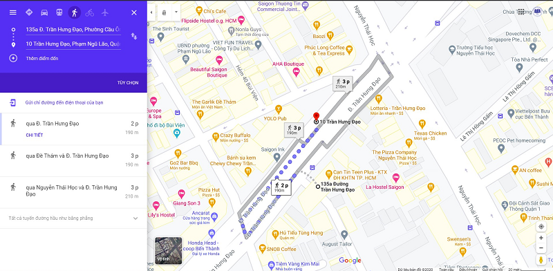 Hình 3: Đường đi từ Ký túc xá 135A Trần Hưng Đạo đến trạm gần nhất đón xe buýt 45