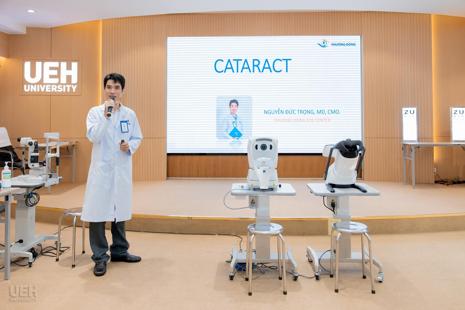 Một trong những nội dung nổi bật của chương trình là phần báo cáo chuyên đề “Bệnh lý Đục thủy tinh thể” do Bác sĩ Chuyên khoa I Nguyễn Đức Trọng - Giám đốc Chuyên môn Trung tâm Mắt Quốc tế Phương Đông trình bày. Bằng kiến thức chuyên môn sâu và cách truyền đạt dễ hiểu, Bác sĩ Trọng đã mang đến cho người tham dự những thông tin hết sức giá trị về nguyên nhân, dấu hiệu nhận biết và các phương pháp điều trị, phòng ngừa căn bệnh này.