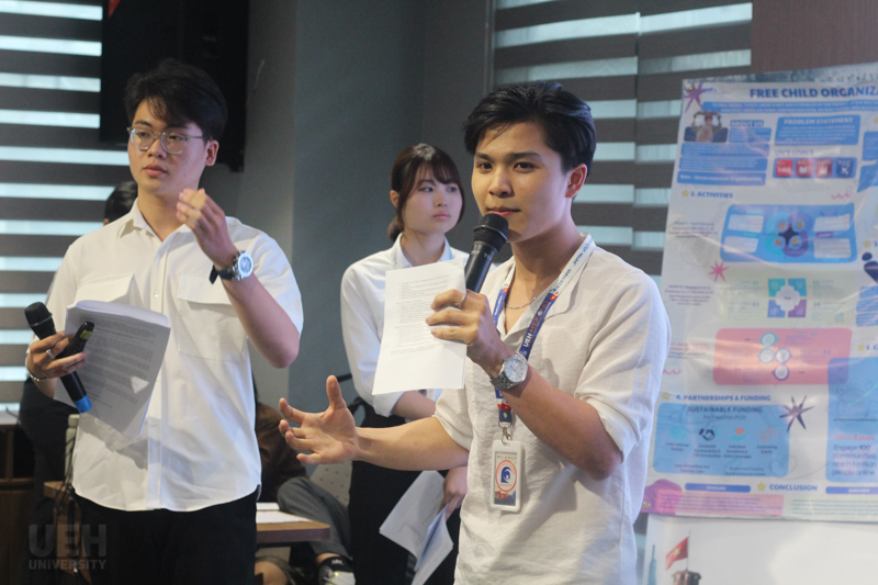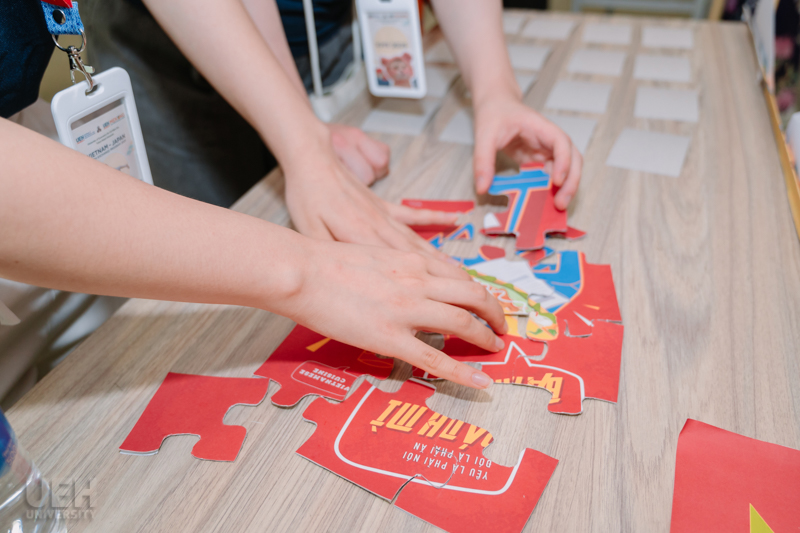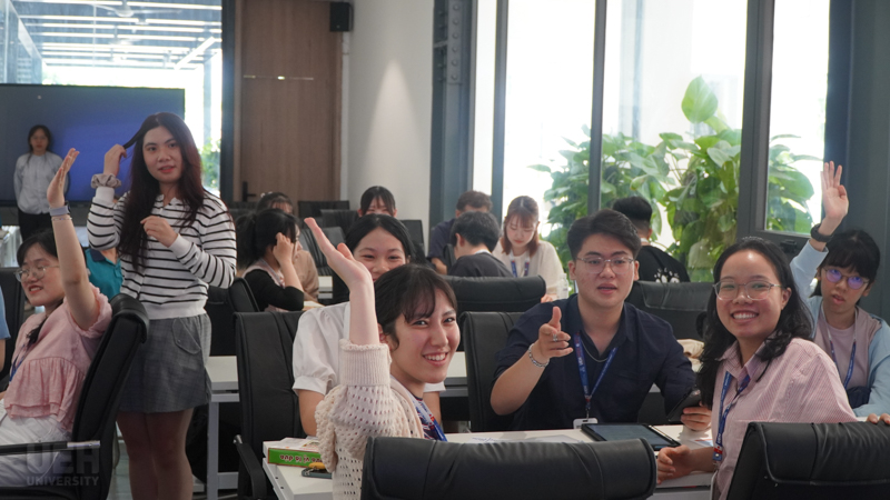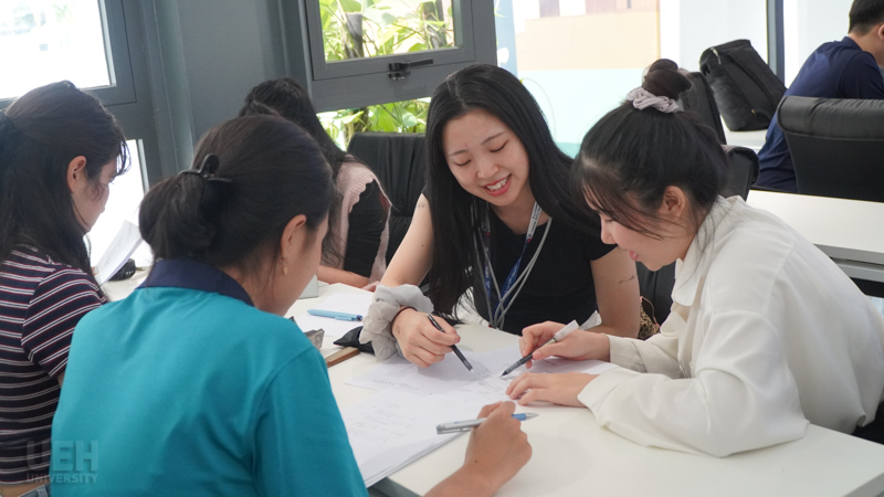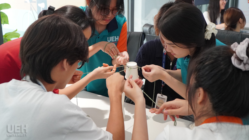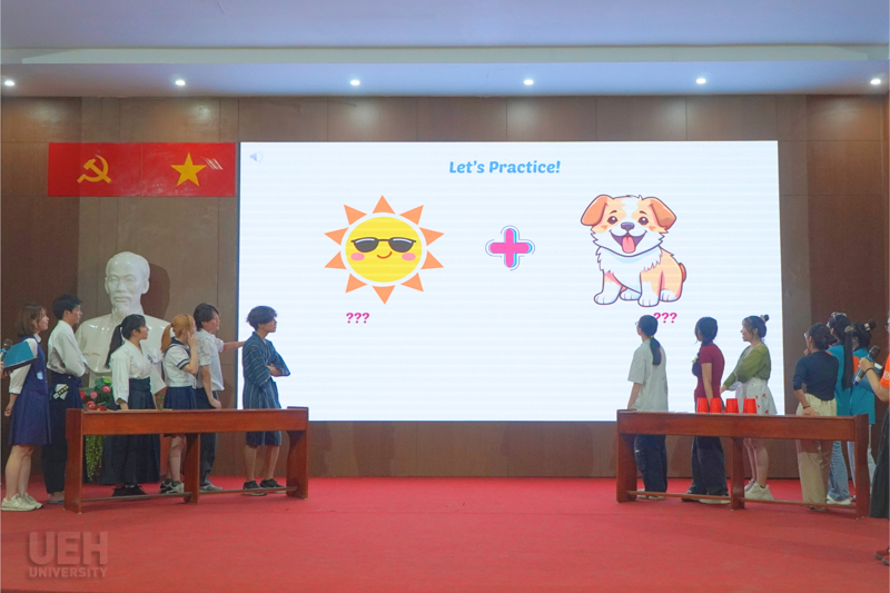 Điểm nhấn đầu tiên là lớp học ngôn ngữ song phương. Sinh viên UEH và TKU được chia nhóm, cùng luyện phát âm, giới thiệu bản thân và học bảng chữ cái. Đây là cơ hội để các bạn nâng cao kỹ năng ngôn ngữ đồng thời thấu hiểu hơn về văn hóa hai nước. Song song đó là các hoạt động team building sôi nổi rèn luyện tinh thần đồng đội, kỹ năng phối hợp và sự tự tin khi giao tiếp xuyên văn hóa.