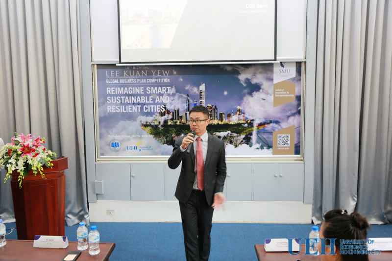 Tại Hội thảo, Ban tổ chức đã cung cấp nhiều thông tin về cuộc thi, đồng thời chia sẻ và thảo luận sâu chủ đề “Giải pháp đổi mới sáng tạo về thành phố thông minh và cơ hội trong khu vực ASEAN” với sự góp mặt của các diễn giả Ông Leon Cai - Giám đốc khu vực của Enterprise Singapore, TS. Trịnh Tú Anh - Chuyên gia nghiên cứu Đô thị thông minh - Giảng viên thỉnh giảng UEH, Ông Choon Poh Pooi - Phó Tổng giám đốc Ngân hàng DBS (Singapore) chi nhánh TP. Hồ Chí Minh. Các diễn giả chia sẻ về cơ hội và thách thức của các doanh nghiệp khởi nghiệp khi phát triển tại Việt Nam và Singapore, cũng như tác động xã hội của các giải pháp thành phố thông minh đến sự phát triển của các thành phố lớn trong khu vực Đông Nam Á.