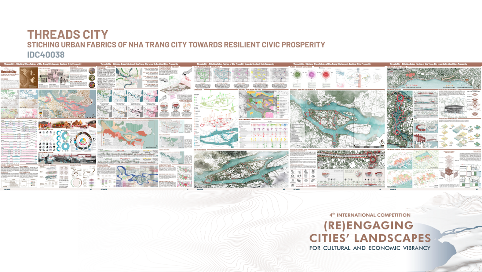 Threads City - Stitching Urban Fabrics of Nha Trang City Towards Resilient Civic Prosperity tiếp cận vấn đề dưới góc nhìn của Đô thị học cảnh quan (Landscape Urbanism) và Giải pháp thuận thiên nhiên (Nature-based Solutions). Các vấn đề được tiếp cận là các thách thức xã hội - sinh thái trọng yếu để xây dựng một cảnh quan đô thị bền vững, như: sự mất liên kết giữa đô thị và sông Cái, sự mai một của các làng nghề truyền thống, sự phụ thuộc quá mức vào du lịch, và việc khai thác chưa hiệu quả các khu vực ven sông.