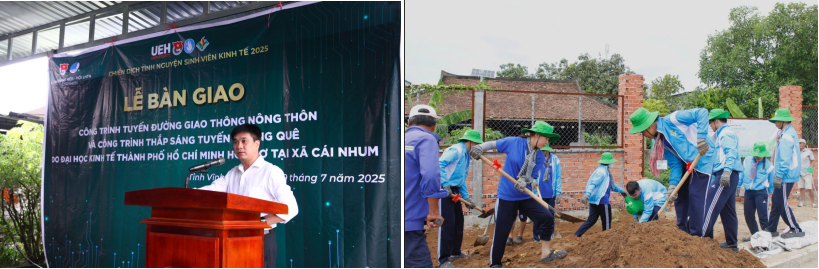 Tiếp nối tinh thần đó, Chiến dịch tình nguyện sinh viên Kinh tế 2025 được triển khai với hai chặng: Mùa hè xanh và Vui hội trăng rằm, huy động tổng nguồn lực hơn 2 tỷ đồng. Các hoạt động tập trung đồng bộ vào chăm lo, phát triển thanh thiếu nhi; xây dựng và cải thiện hạ tầng - môi trường - cảnh quan nông thôn; tổ chức sinh hoạt hè, đêm hội văn hóa, trao học bổng và quà tặng cho gia đình chính sách, thiếu nhi có hoàn cảnh khó khăn. Song song đó, nhiều công trình thanh niên về giao thông nông thôn, không gian sinh hoạt cộng đồng, bảo vệ môi trường và giáo dục – văn hóa – thể thao được triển khai, góp phần cải thiện chất lượng sống tại địa bàn tình nguyện.