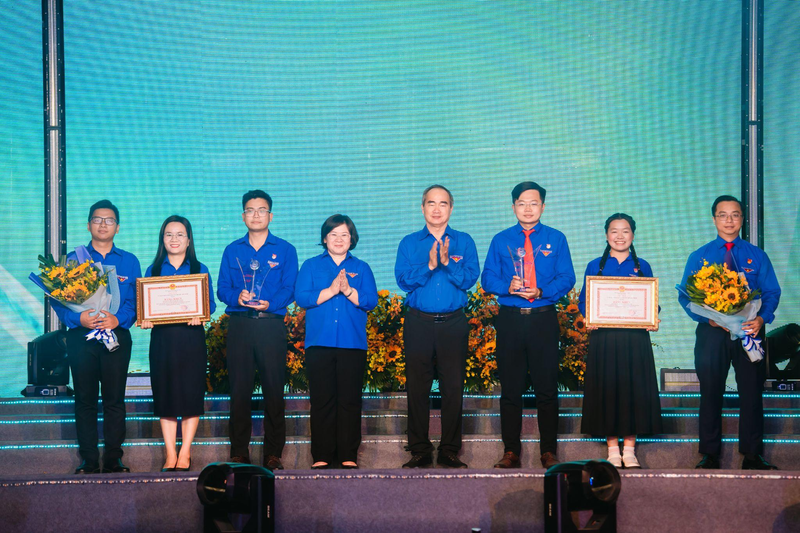 Đại diện thường trực Đoàn Thanh niên UEH nhận giải thưởng Hồ Hảo Hớn năm 2026