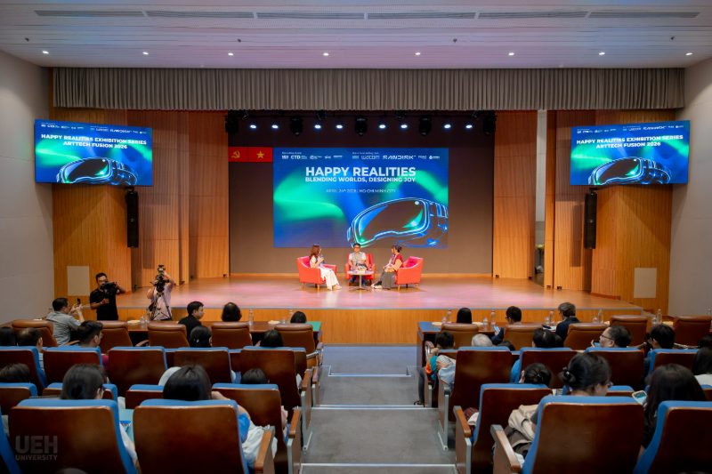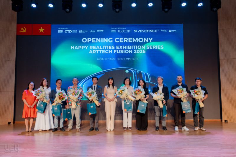 Ngày 24/4/2026, tại Cơ sở B, ArtTech Hub (ATH) thuộc Trường Công nghệ và Thiết kế UEH (CTD), Đại học Kinh tế Thành phố Hồ Chí Minh (UEH) đã tổ chức sự kiện “HAPPY REALITIES: Blending Worlds, Designing Joy” - hoạt động khai mạc chuỗi ArtTech Fusion 2026. Chương trình kết hợp talkshow chuyên đề và triển lãm trải nghiệm đa giác quan, mang đến không gian giao thoa giữa nghệ thuật, công nghệ và cảm xúc; đồng thời giới thiệu Creative Space - không gian đồng sáng tạo của UEH đến cộng đồng.