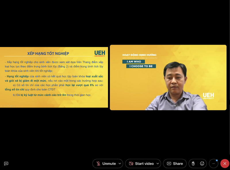Bên cạnh đó, Thầy/Cô còn chia sẻ về những vấn đề quy chế học tập như đăng ký môn học, chuẩn đầu ra, thời gian học tập, học phí. Ngoài ra, sinh viên được nhấn mạnh về những vấn đề học tập thay đổi để thích ứng trong thời đại công nghệ số như đăng ký môn học, chuẩn đầu ra, thời gian học tập và quy định mượn sách, tham khảo tài liệu tại Thư viện… Cùng với đó hoạt động định hướng cũng đã trang bị cho Anh, Chị hệ thống học tập hiện đại và tân tiến, UEH còn xây dựng hệ thống chăm sóc, hỗ trợ và tư vấn chuyên nghiệp.