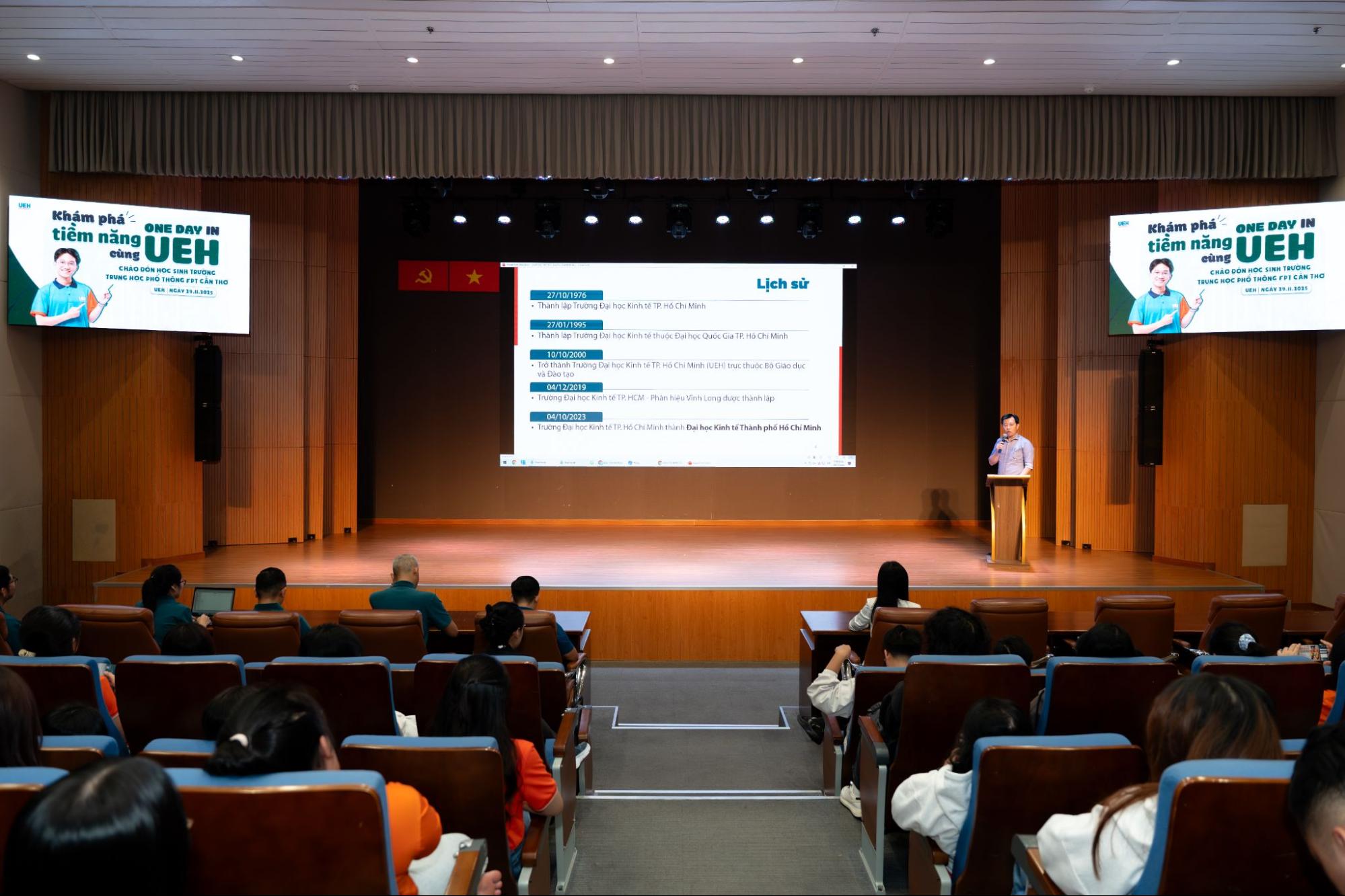 Ngày 29/11/2025, Đại học Kinh tế Thành phố Hồ Chí Minh (UEH) đã chào đón hơn 115 học sinh và thầy cô Trường THPT FPT Cần Thơ đến tham gia Chương trình trải nghiệm “Khám phá tiềm năng cùng UEH” tại cơ sở B của Nhà trường. Hoạt động nhằm mang đến cho học sinh phổ thông cơ hội tiếp cận môi trường đại học hiện đại, tìm hiểu thông tin tuyển sinh và định hướng nghề nghiệp phù hợp trong bối cảnh phát triển giáo dục bền vững và hội nhập quốc tế.