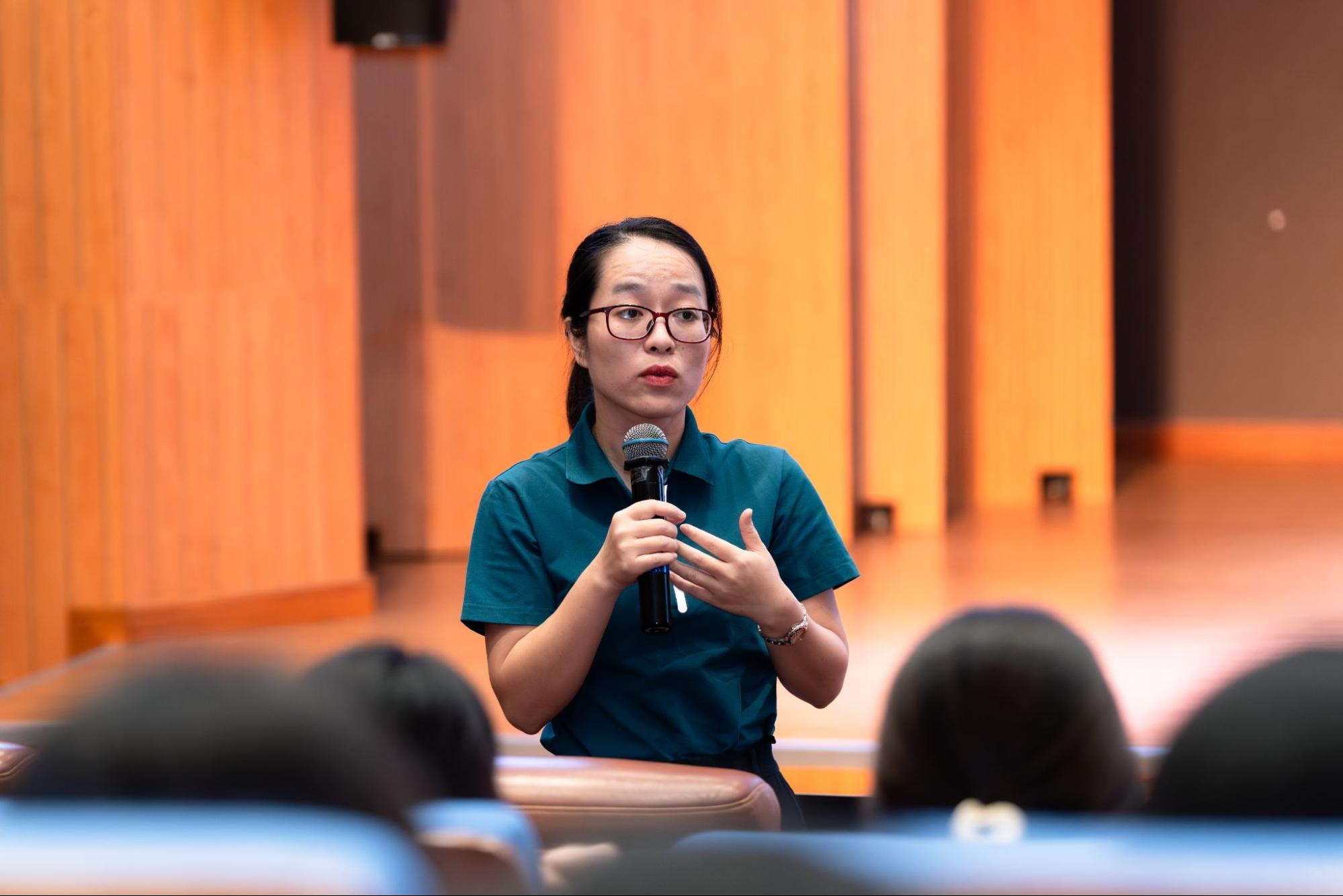 Tiếp nối là phần thảo luận giữa học sinh và đội ngũ giảng viên đại diện các Khoa/Viện. Những câu hỏi liên quan đến lựa chọn ngành nghề, triển vọng việc làm, yêu cầu năng lực và cơ hội trải nghiệm quốc tế đã được giải đáp chi tiết, mang lại cho các bạn học sinh cái nhìn thực tế và đa chiều về định hướng tương lai. Hoạt động này không chỉ hỗ trợ quá trình định hướng nghề nghiệp, mà còn thể hiện sự cam kết của UEH trong việc đồng hành cùng các trường THPT trong công tác tư vấn và phát triển năng lực học sinh.