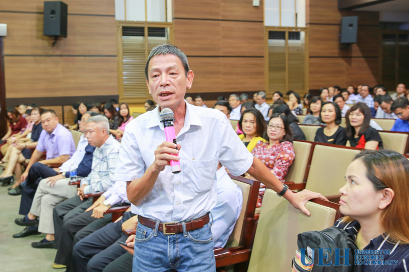 Tại hội nghị, TS. Trần Thế Hoàng - Chủ tịch Hội đồng trường UEH đã giới thiệu cơ cấu và số lượng nhân sự Hội đồng trường nhiệm kỳ 2016-2021; đồng thời trình bày một số thay đổi liên quan đến cơ cấu thành viên đương nhiên, thành viên trong và ngoài UEH theo Luật sửa đổi, bổ sung một số điều của Luật Giáo dục đại học. Theo đó, Hội đồng trường thực hiện quy trình bầu bổ sung và thay thế 3 thành viên Hội đồng trường gồm 2 thành viên đại diện giảng viên, viên chức, người lao động UEH và 01 thành viên ngoài UEH để đảm bảo đạt tỷ lệ theo quy định.
