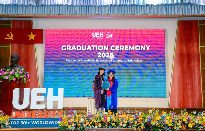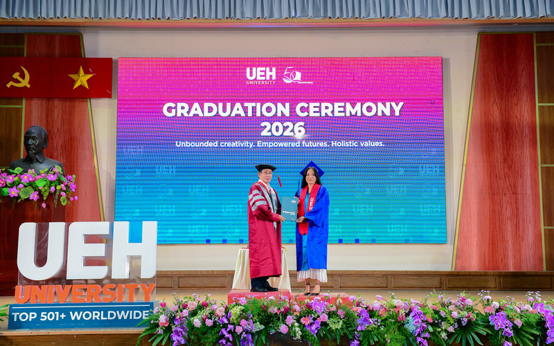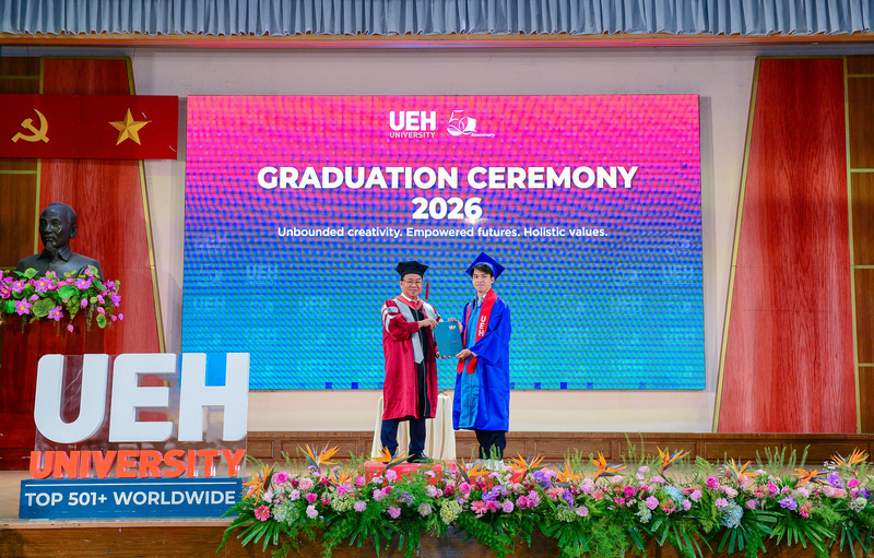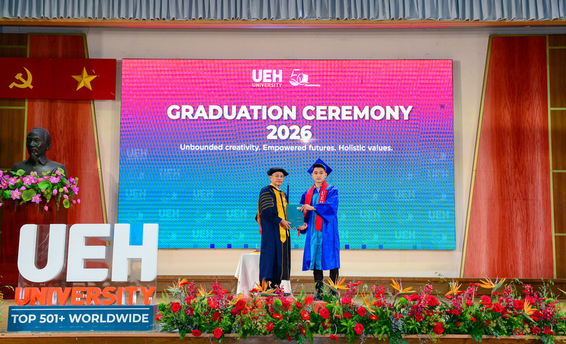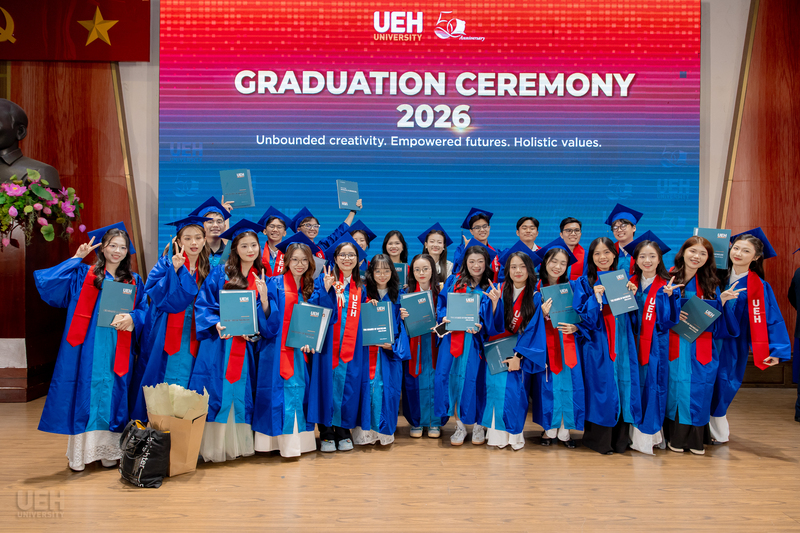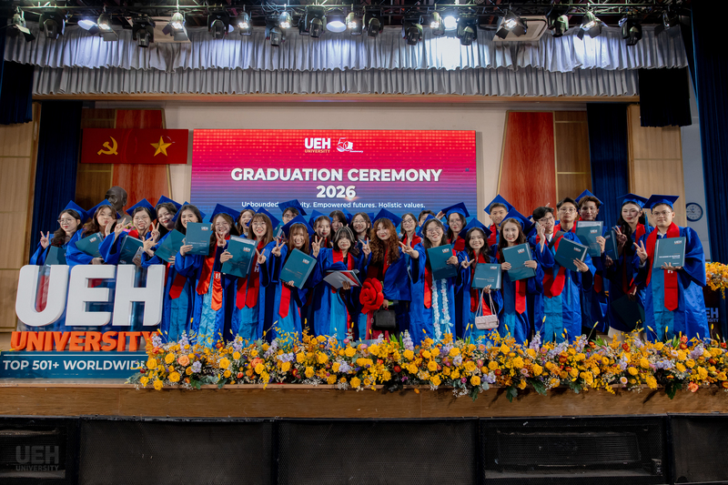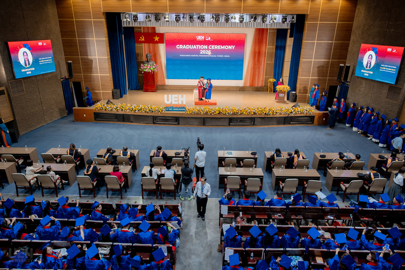 Từ ngày 21/03-12/04/2026, Đại học Kinh tế Thành phố Hồ Chí Minh (UEH) đã long trọng tổ chức Lễ tốt nghiệp cho hơn 6.000 người học UEH các bậc hệ đào tạo từ Tiến sĩ, Thạc sĩ, Đại học chính quy (ĐHCQ) tại cơ sở TP.HCM và UEH Mekong, Văn bằng 2 ĐHCQ, Liên thông ĐHCQ và Đại học Vừa làm vừa học (VLVH).