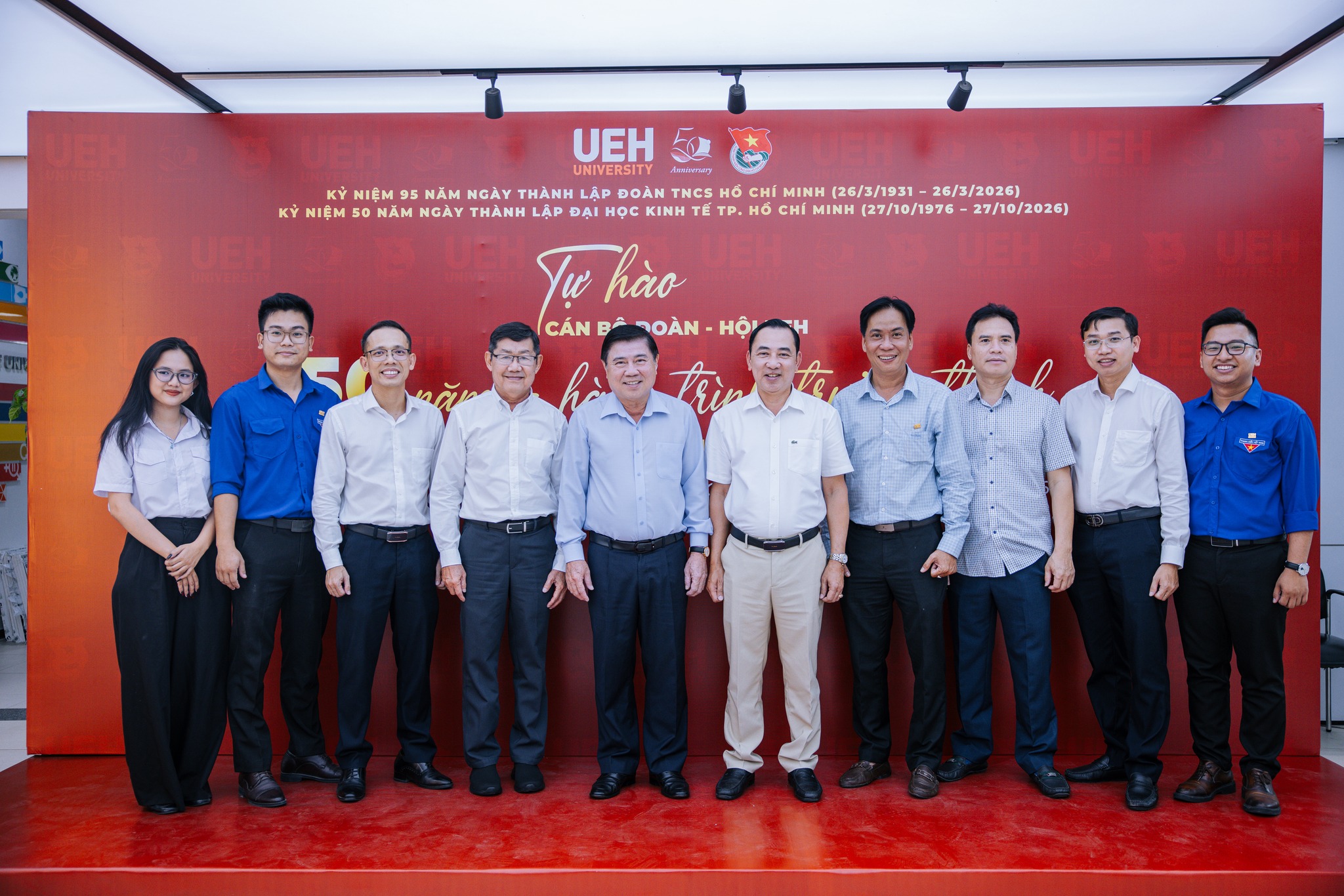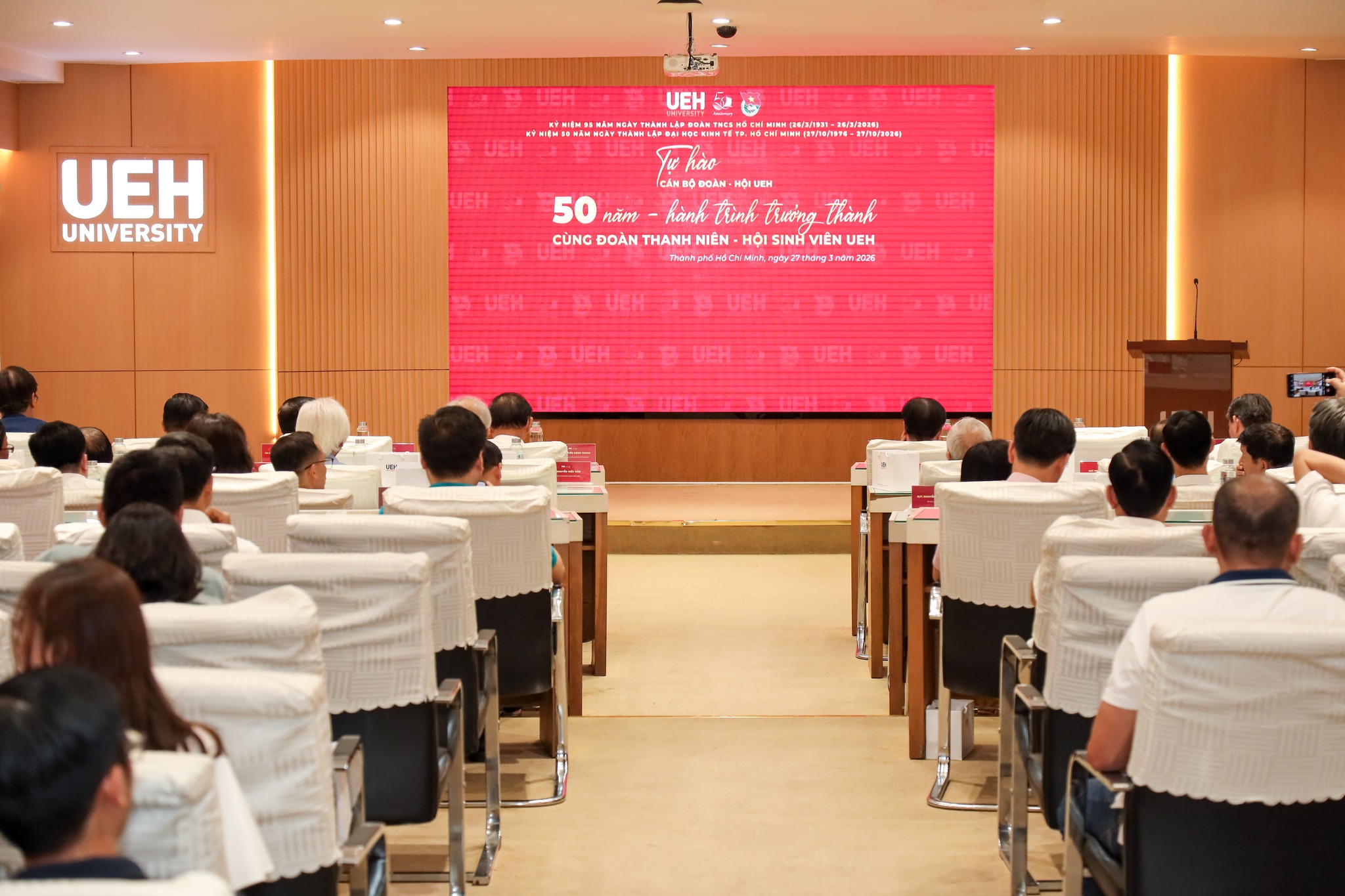 Hòa chung trong không khí kỷ niệm 95 năm ngày thành lập Đoàn TNCS Hồ Chí Minh (26/3/1931 - 26/3/2026), chiều 27/3/2026 tại cơ sở A UEH - Nguyễn Đình Chiểu, Đoàn Thanh niên Đại học Kinh tế Thành phố Hồ Chí Minh (UEH) đã phối hợp với Ban Liên lạc cựu cán bộ Đoàn - Hội UEH tổ chức Chương trình họp mặt truyền thống cán bộ Đoàn - Hội UEH các thời kỳ.