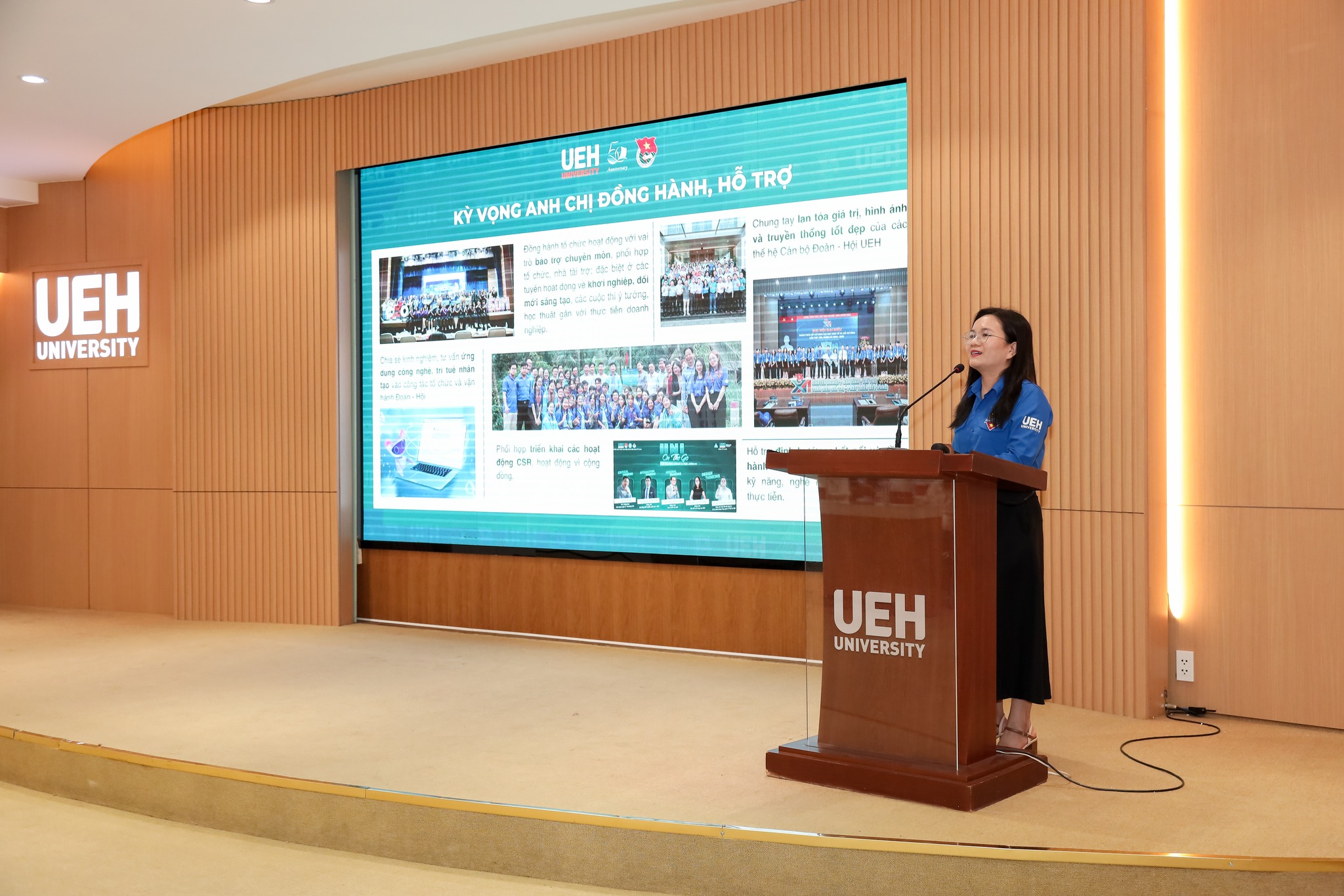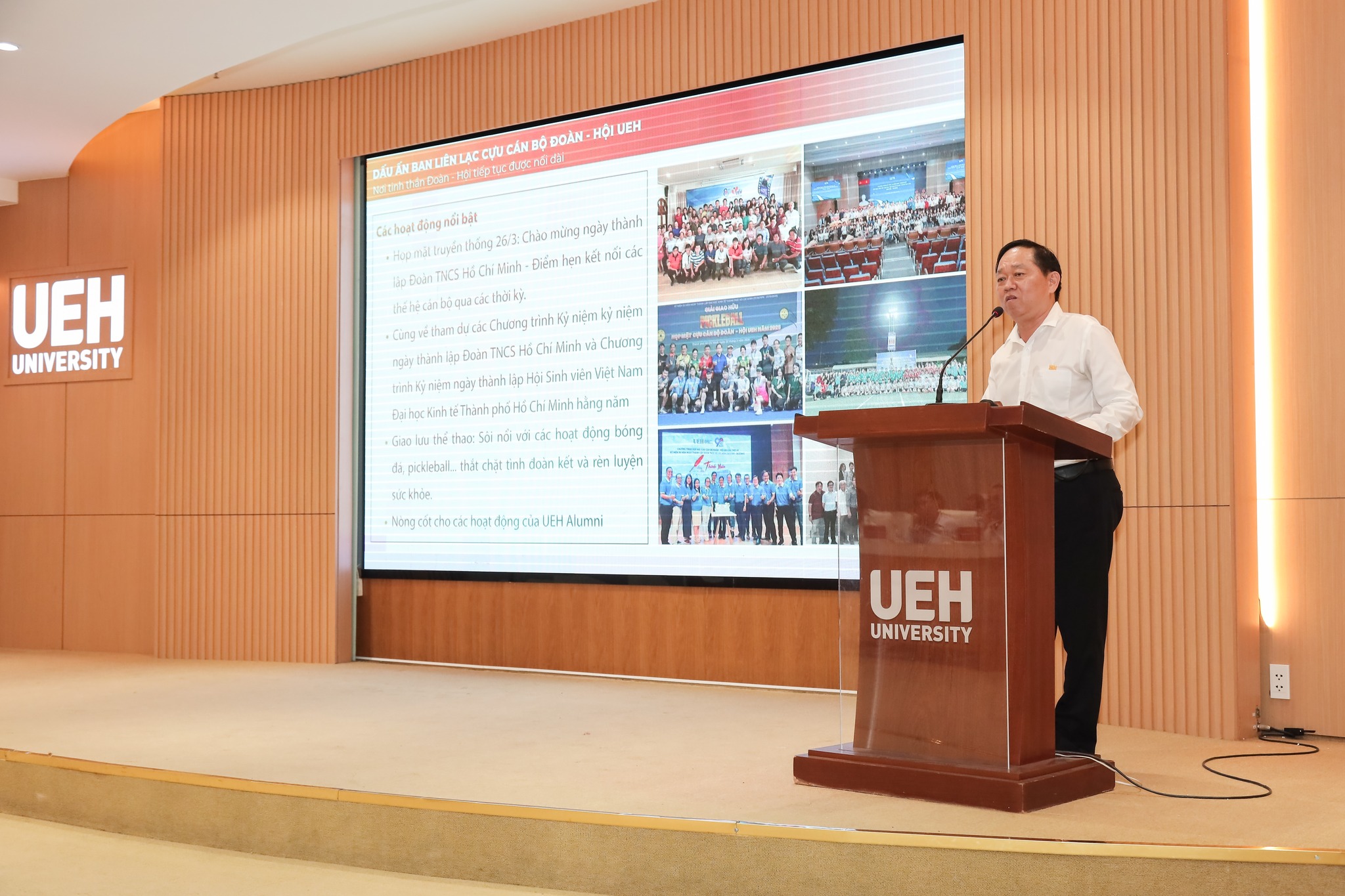 Chương trình đồng thời giới thiệu các hoạt động trọng tâm nhằm kết nối cựu người học, cựu cán bộ Đoàn - Hội trong chuỗi hoạt động chào mừng kỷ niệm 50 năm thành lập Đại học Kinh tế Thành phố Hồ Chí Minh. Đây cũng là dịp để lan tỏa tinh thần đồng hành, chung tay đóng góp của các thế hệ; qua đó tiếp tục vun đắp các giá trị tốt đẹp và tăng cường sự gắn kết trong cộng đồng UEH.