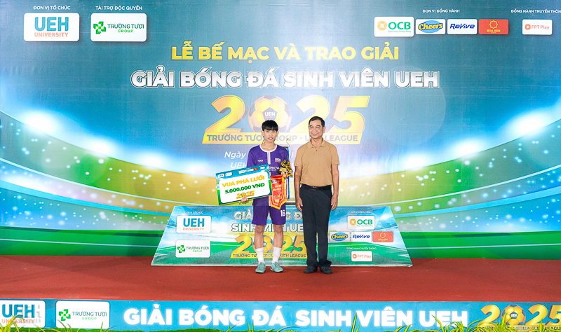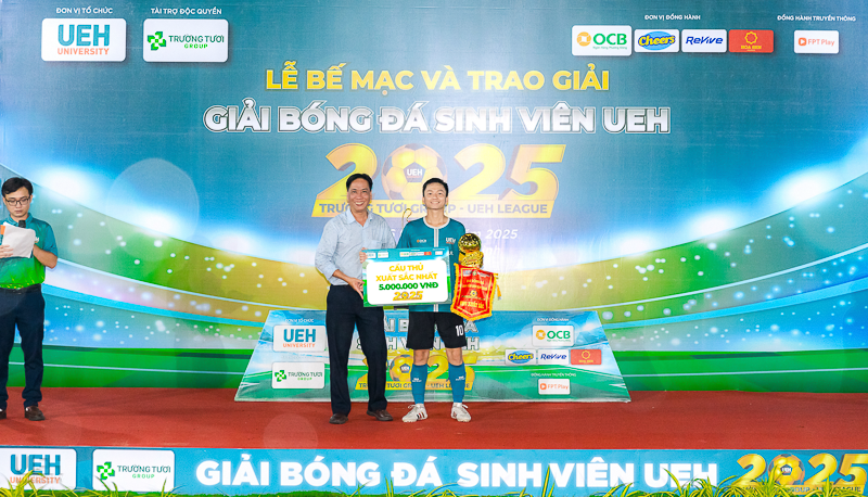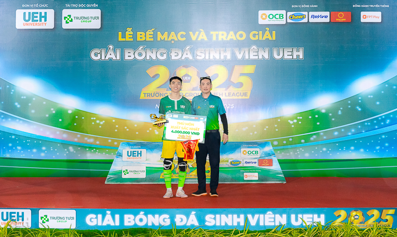Vào ngày 16/11/2025, tại sân bóng đá UEH Nguyễn Văn Linh, Lễ Bế mạc và trao giải Giải bóng đá sinh viên Trường Tươi Group - UEH League 2025 đã diễn ra trong không khí trang trọng và sôi nổi. Sự kiện đã tổng kết một hành trình kéo dài 7 tháng, vinh danh những tập thể và cá nhân xuất sắc, đồng thời chính thức khép lại một mùa giải thành công rực rỡ.