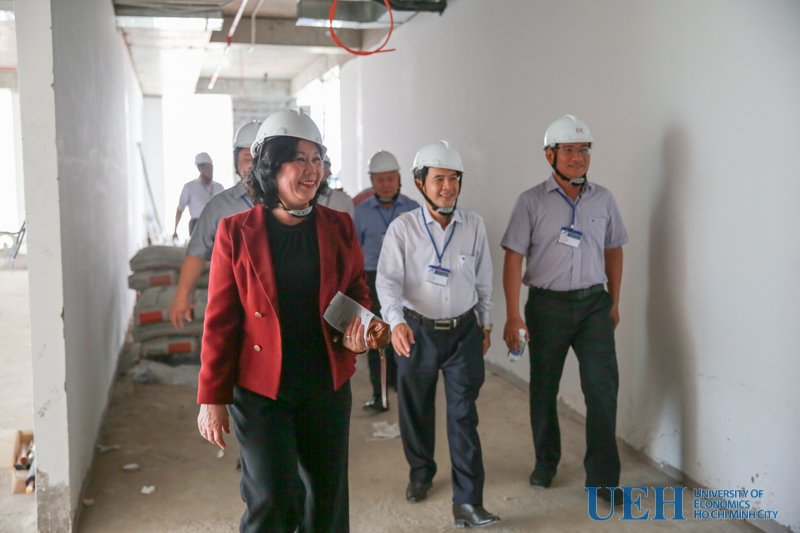 Phát biểu tại buổi lễ, GS. Hiệu trưởng Nguyễn Đông Phong nhấn mạnh đây là giai đoạn quan trọng của dự án, đánh dấu sự mong đợi của các thế hệ Thầy/Cô, người học tại UEH về một tòa nhà làm việc, giảng dạy khang trang, hiện đại đã dần thành hiện thực. Đây là thành quả của sự đồng lòng, quyết tâm cao trong tập thể lãnh đạo; sự nỗ lực, kiên trì, không ngại khó khăn của các đơn vị liên quan trong và ngoài UEH. GS. Hiệu trưởng cũng lưu ý giai đoạn còn lại để hoàn thiện công trình sẽ rất nhiều việc, đòi hỏi lãnh đạo nhà trường, các đơn vị liên quan của UEH và các nhà thầu tiếp tục cố gắng, tập trung công sức, chung tay phối hợp vì mục tiêu chung, đưa công trình đi vào sử dụng theo kế hoạch.
