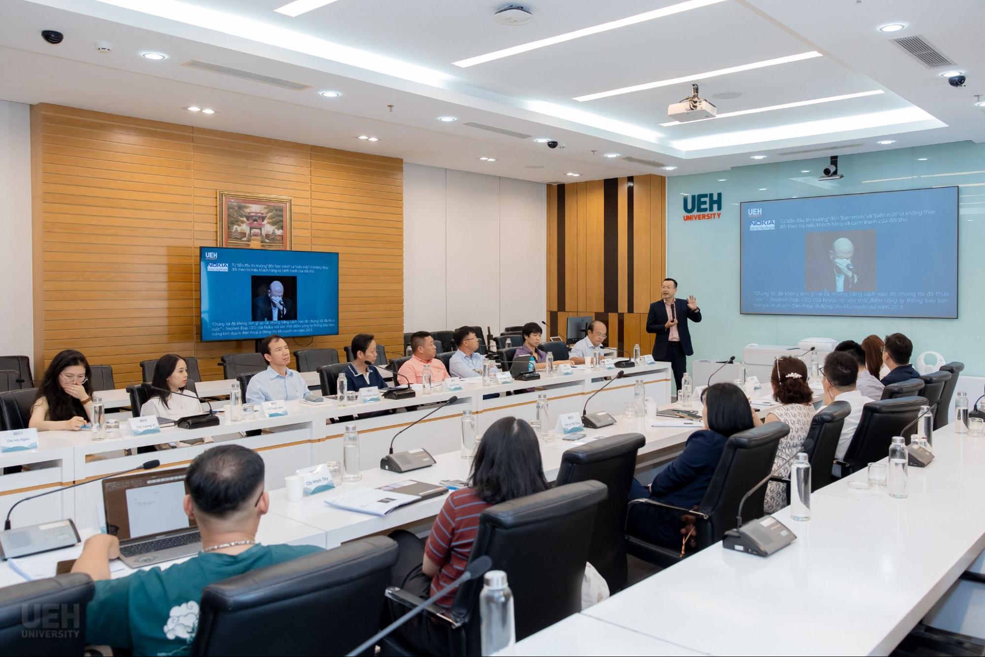 Tại buổi lễ, ThS. Nguyễn Đức Việt - đại diện Ban Đào tạo UEH đã trình bày tổng quan quy chế học tập và hướng dẫn sử dụng hệ thống học tập, nghiên cứu của UEH, tạo điều kiện để học viên chuẩn bị đầy đủ trước khi bước vào quá trình đào tạo.