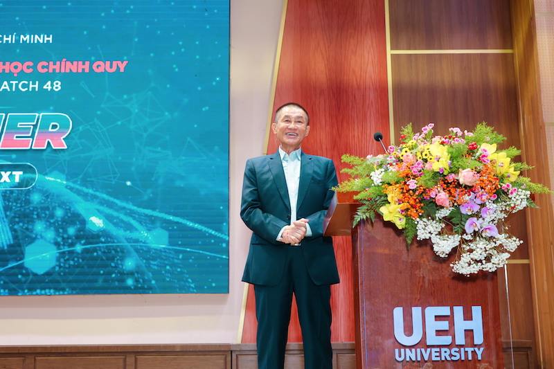 Đó là bài giảng đầu tiên của Thầy Hiệu trưởng - GS.TS. Sử Đình Thành với những chia sẻ đầy tâm huyết đã truyền ngọn lửa nhiệt huyết cho Tân sinh viên để các bạn chuẩn bị hành trang theo đuổi tri thức, phát triển thành những phiên bản tốt nhất của chính mình tại nơi giảng đường đại học. “Các em thân mến, “Tôi là người tôi chọn - I am who I choose to be” chính là thông điệp mà UEH đã trao gửi ngay từ khi các em bắt đầu những giấc mơ lớn - giấc mơ Đại học. Và Thầy tin rằng, các em đã có một lựa chọn đúng. UEH tự hào là một Đại học công lập có uy tín hàng đầu tại Việt Nam, được sự công nhận bởi các tổ chức xếp hạng uy tín trong nước và quốc tế. Với chiến lược tiên phong phát triển Đa ngành và Bền vững trong giai đoạn sắp tới, UEH tự tin tại chính ngôi trường này, các em sẽ được trao quyền, trao những không gian đổi mới, sáng tạo để các em tự do lựa chọn ngành học, tự do chọn cách học, tự do thể hiện bản thân, tự do định hướng tương lai cho chính mình, tự do trở thành bất kỳ ai mà các em mong muốn. Nhà trường hi vọng rằng, các em sẽ cùng nhà trường định nghĩa lại một khái niệm mới về người học, một thế hệ trưởng thành bởi tri thức, kỹ năng, năng lực, sẵn sàng đổi mới sáng tạo, tư duy toàn cầu, hành động địa phương, luôn sẵn sàng và dấn thân để nắm bắt những cơ hội của chính mình.” - Thầy Thành chia sẻ.