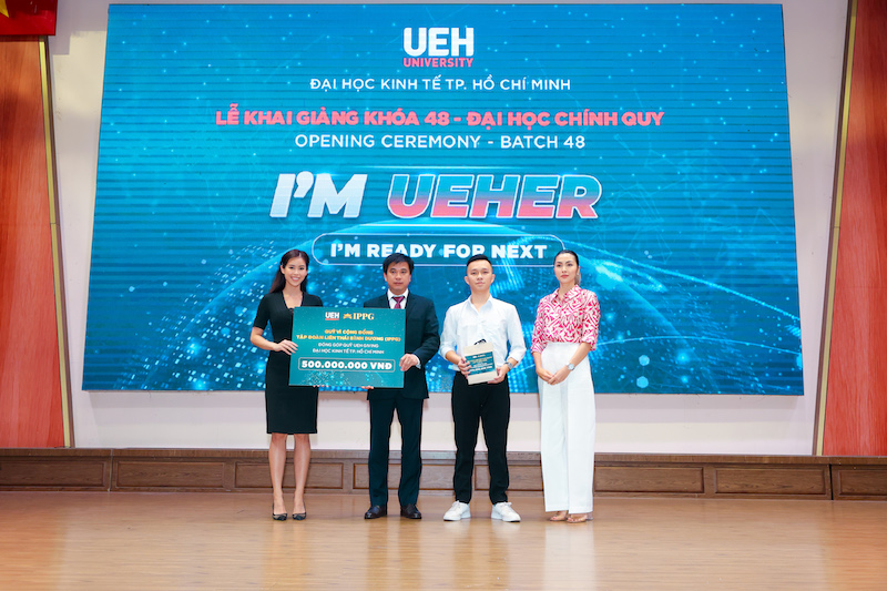 Lễ khai giảng Khóa 48 - Đại học chính quy UEH vinh dự đón tiếp: Ông Johnathan Hạnh Nguyễn - Chủ tịch tập đoàn Liên Thái Bình Dương (IPPG); Bà Lê Hồng Thuỷ Tiên - Tổng Giám đốc IPPG; Ông Louis Nguyễn - Phó TGĐ phát triển kinh doanh IPPG; Bà Tăng Thanh Hà - Đại diện Quỹ Vì Cộng Đồng IPPG; Bà Jacqueline Thảo Tiên Nguyễn - Phó Tổng Giám đốc phát triển thời trang cao cấp IPPG; Ông William Hiếu Nguyễn - Phó Tổng Giám đốc phát triển kinh doanh IPPG.