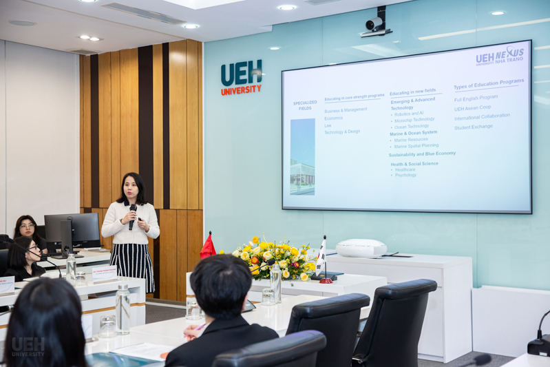 - Xây dựng các chương trình liên kết học thuật: triển khai các mô hình liên kết đào tạo như 2+2 và 3+1 giữa UEH và KMOU, với mục tiêu xây dựng lộ trình học tập quốc tế linh hoạt, thúc đẩy sự di chuyển của sinh viên và hợp tác trong giảng dạy. Các chương trình này đặc biệt được xem xét kết nối với UEH Nexus để tận dụng tối đa lợi thế không gian biển.
