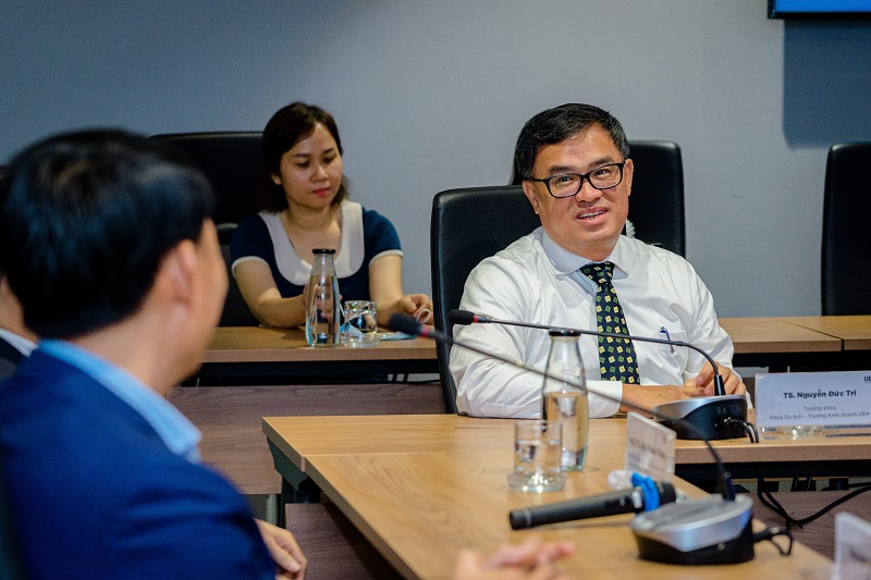 Tham dự lễ ký kết, về phía Trường Kinh doanh UEH có: PGS.TS. Bùi Thanh Tráng - Phó Hiệu trưởng Trường Kinh doanh UEH; TS. Nguyễn Đức Trí - Trưởng khoa Du lịch; ThS. Đoàn Đức Minh; cùng giảng viên khoa Du lịch.