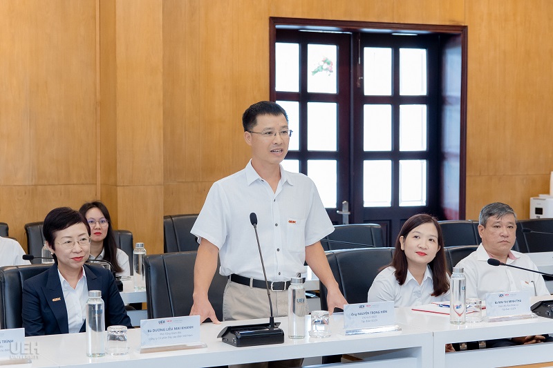 Ông Nguyễn Trọng Hiền - Chủ tịch HĐQT Tập đoàn GELEX trân trọng cảm ơn và gửi lời chào mừng đến lãnh đạo UEH, các thầy cô và đại biểu; đồng thời bày tỏ ấn tượng về sự phát triển của Nhà trường và sự đón tiếp nồng nhiệt của Ban Lãnh đạo UEH. Ông cũng chia sẻ thông tin đội ngũ nhân sự lãnh đạo chủ chốt của Tập đoàn và các công ty thành viên hiện tại có nhiều người là cựu sinh viên UEH. Chia sẻ tại buổi lễ, ông nhấn mạnh tầm nhìn “kiến tạo tương lai” của GELEX trong bối cảnh nhiều thách thức và cơ hội từ khoa học - công nghệ, đặc biệt là AI. Tập đoàn xác định chiến lược phát triển dựa trên hai trụ cột: đầu tư vào khoa học - công nghệ và phát triển con người, coi việc xây dựng nguồn nhân lực chất lượng cao là ưu tiên hàng đầu. GELEX luôn tìm kiếm, nuôi dưỡng tài năng thông qua hợp tác với các trường đại học, tạo cơ hội trải nghiệm thực tiễn cho sinh viên. Trong đó, GELEX đang triển khai dự án Chương trình Kết nối 10 năm (2025-2035) nhằm đồng bộ hoá hệ sinh thái giữa nhà trường và doanh nghiệp, gắn đào tạo với thực tiễn, nghiên cứu và đổi mới sáng tạo. Qua đó, ông bày tỏ mong muốn GELEX có thể đồng hành, hợp tác lâu dài cùng UEH để phát triển nguồn nhân lực, thúc đẩy sáng tạo và đóng góp cho sự phát triển đất nước.